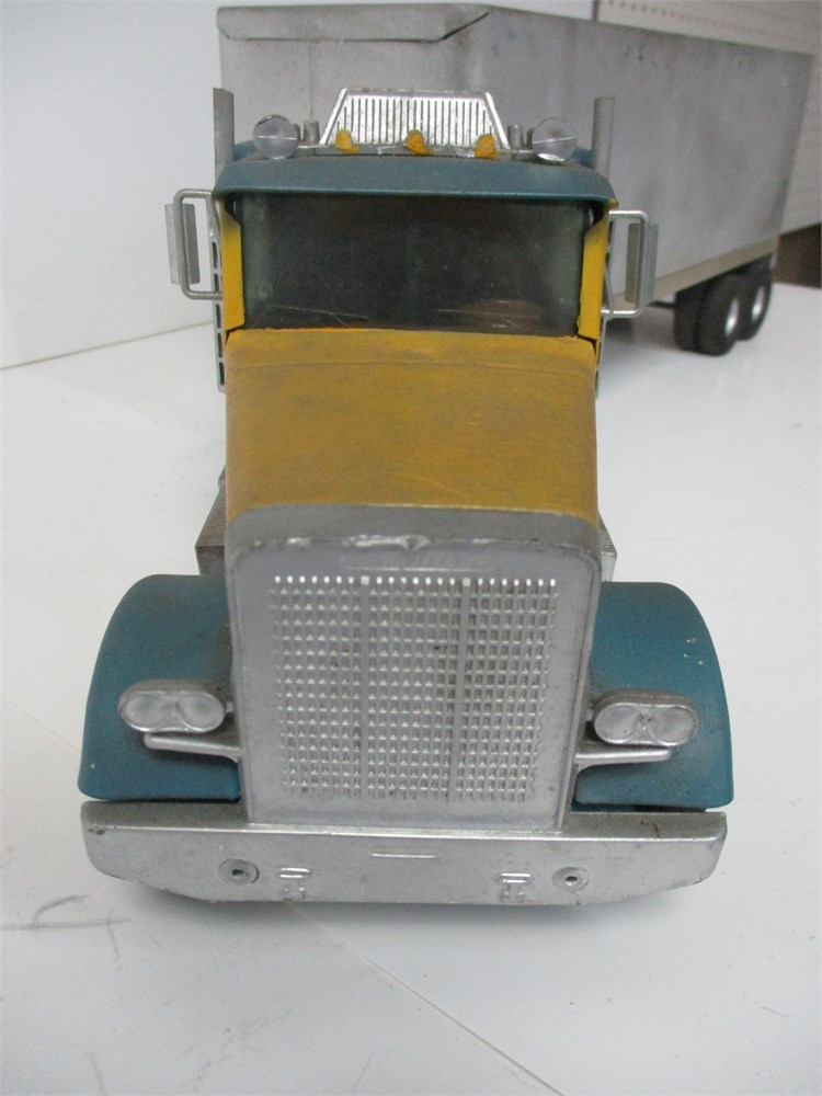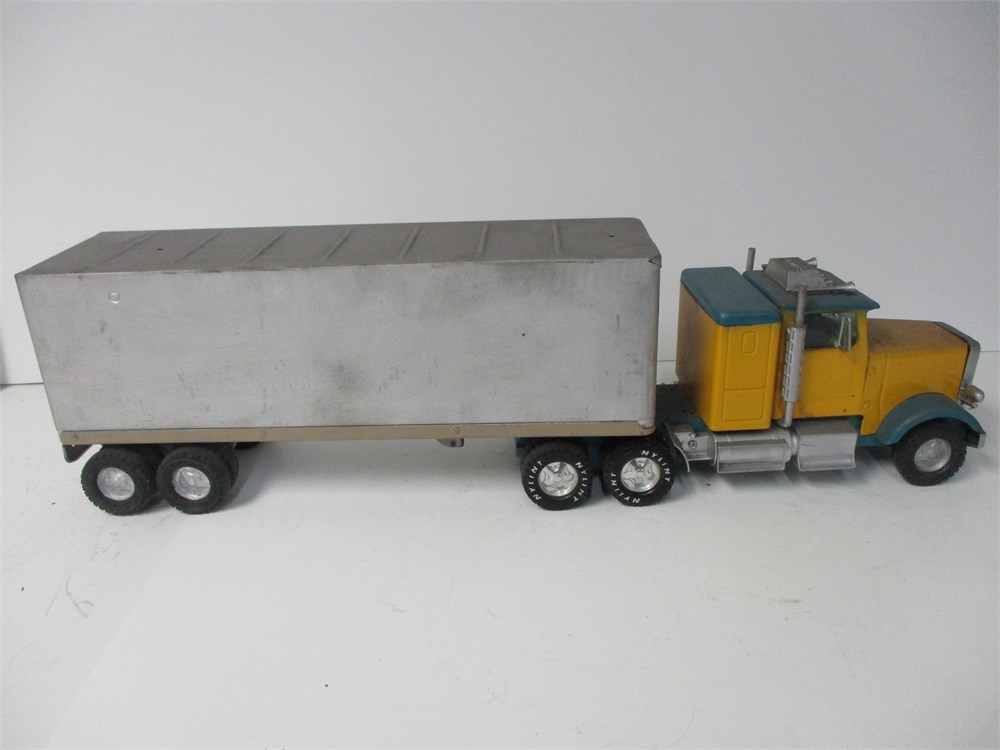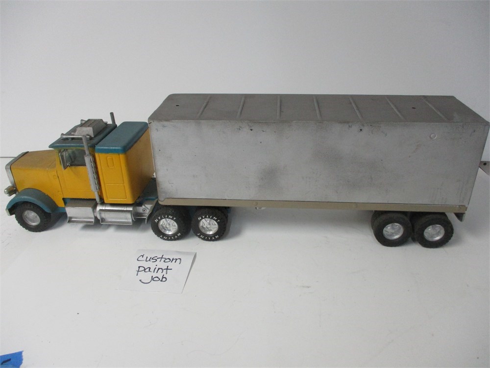 Includes: Tractor and matching unlabeled silver dry-van trailer (both Nylint).