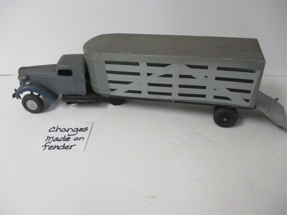Vintage Pressed-Steel Semi Tractor w/ Livestock Trailer – Unmarked – Project
