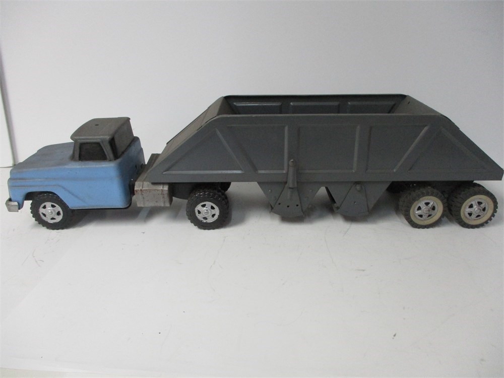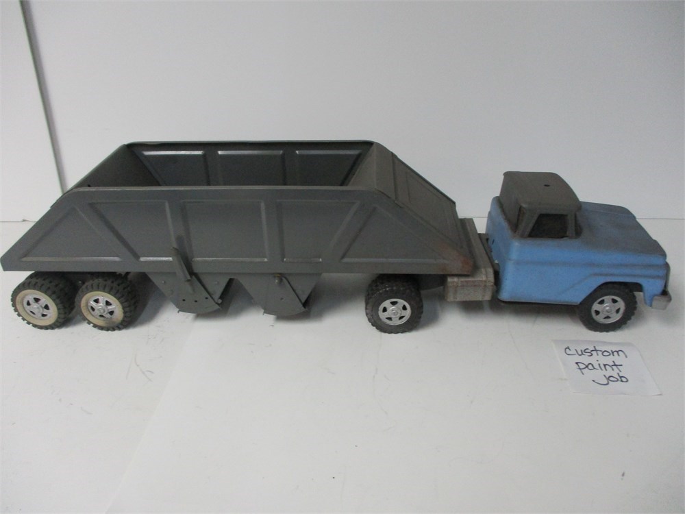 TONKA Vintage Pressed-Steel Semi Truck w/ Side-Dump Pup Trailer — Custom Repaint
