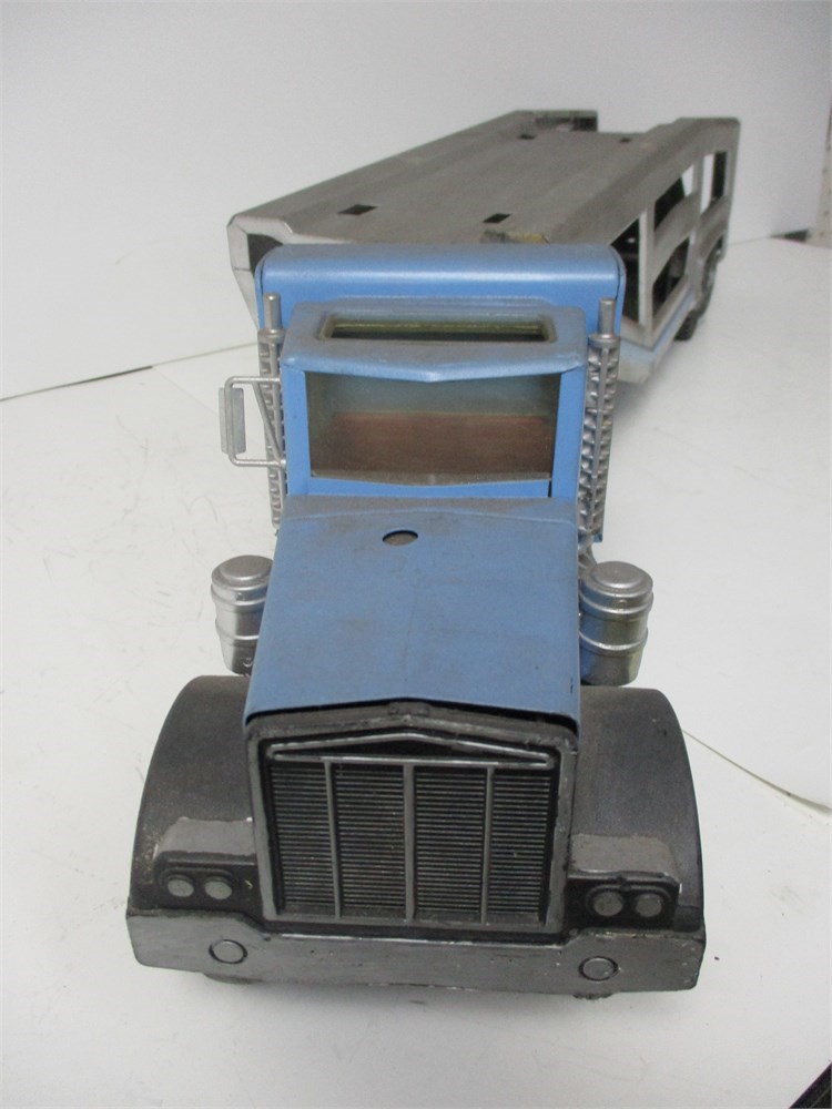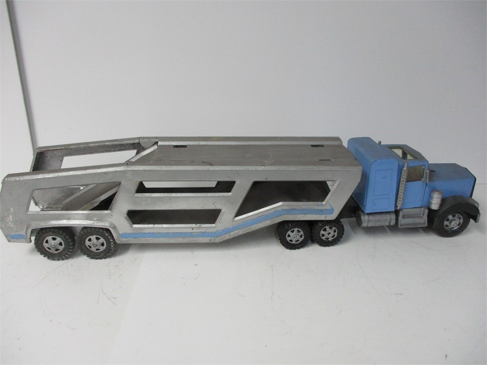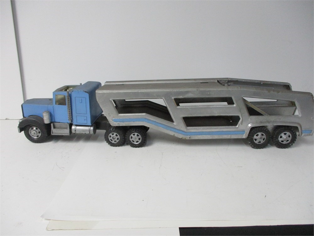 Tonka 3119 Car Carrier Semi Truck – Blue Cab w/ Silver Double-Deck Trailer