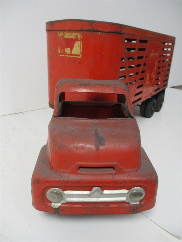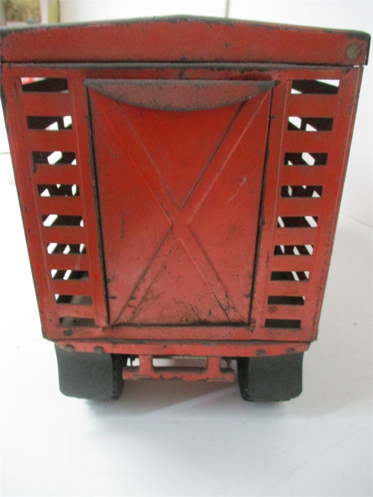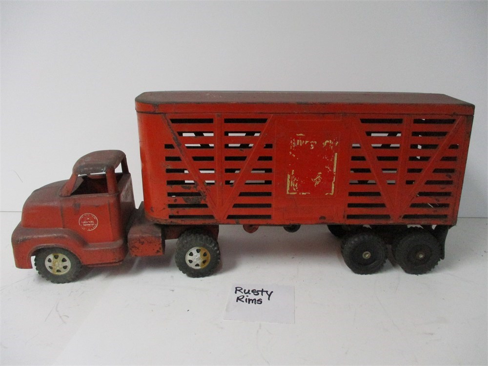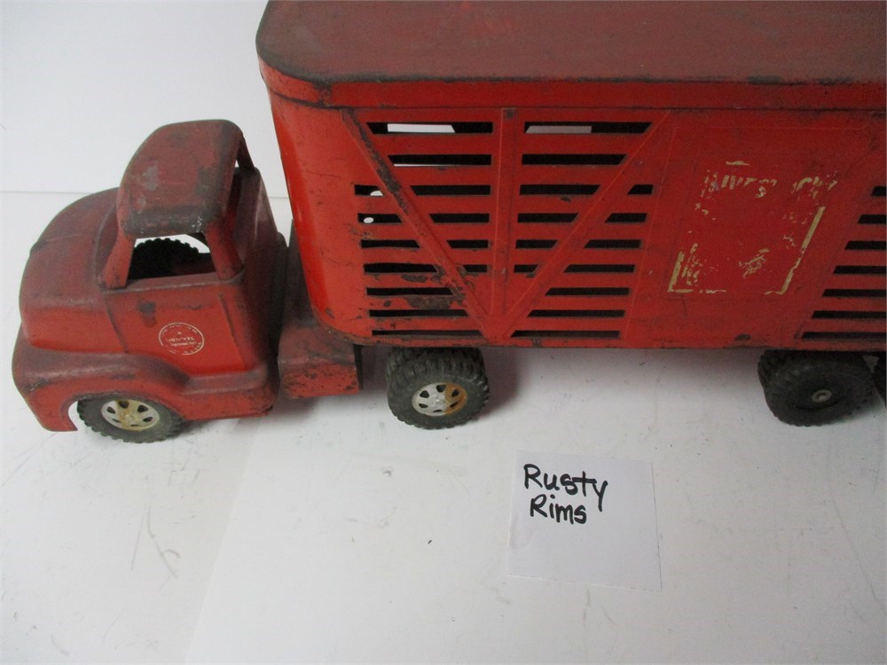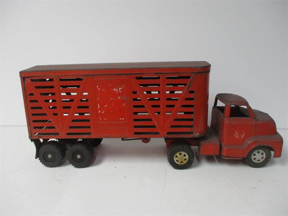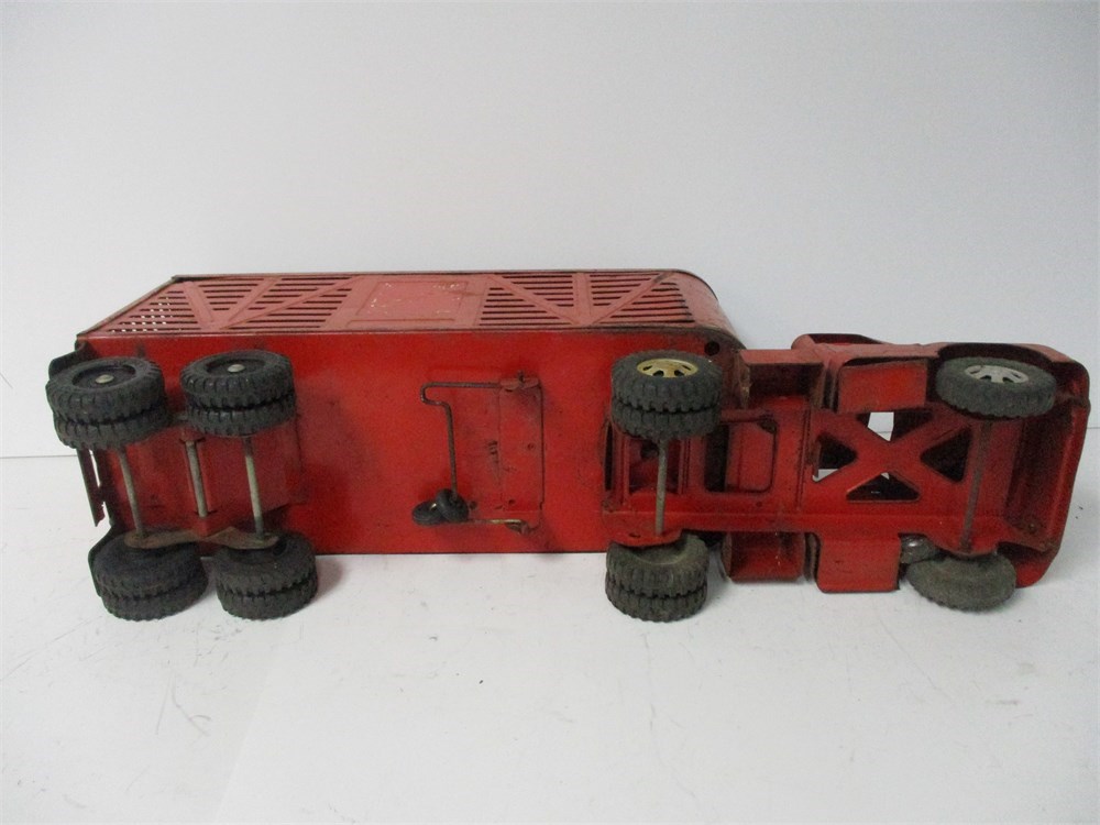 Dunwell Livestock Transport Semi Truck – Red Pressed Steel (1950s/60s)