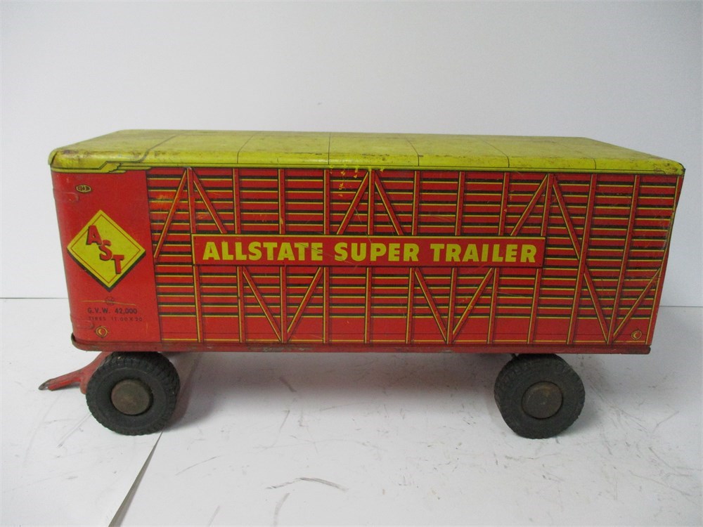 • Model: “Allstate Super Trailer” livestock/van trailer with printed cage graphics and opening rear doors.