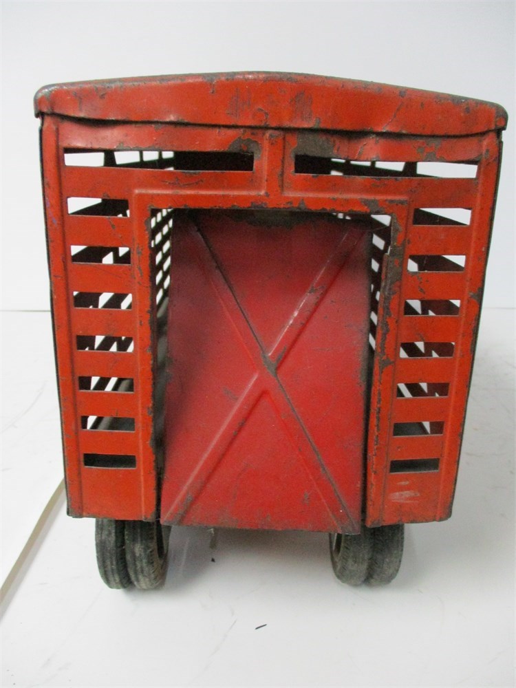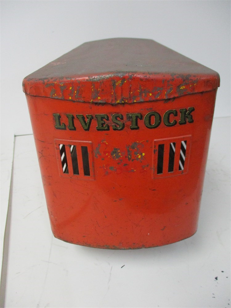 Vintage Pressed-Steel Livestock Trailer – Red Slat-Side – Replacement Wood Floor