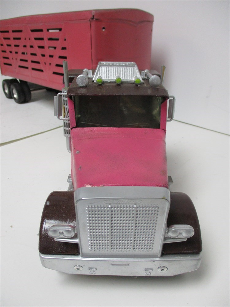 Nylint Pressed-Steel Livestock Semi Truck & Trailer — Custom Pink Repaint (c.1970s–80s)