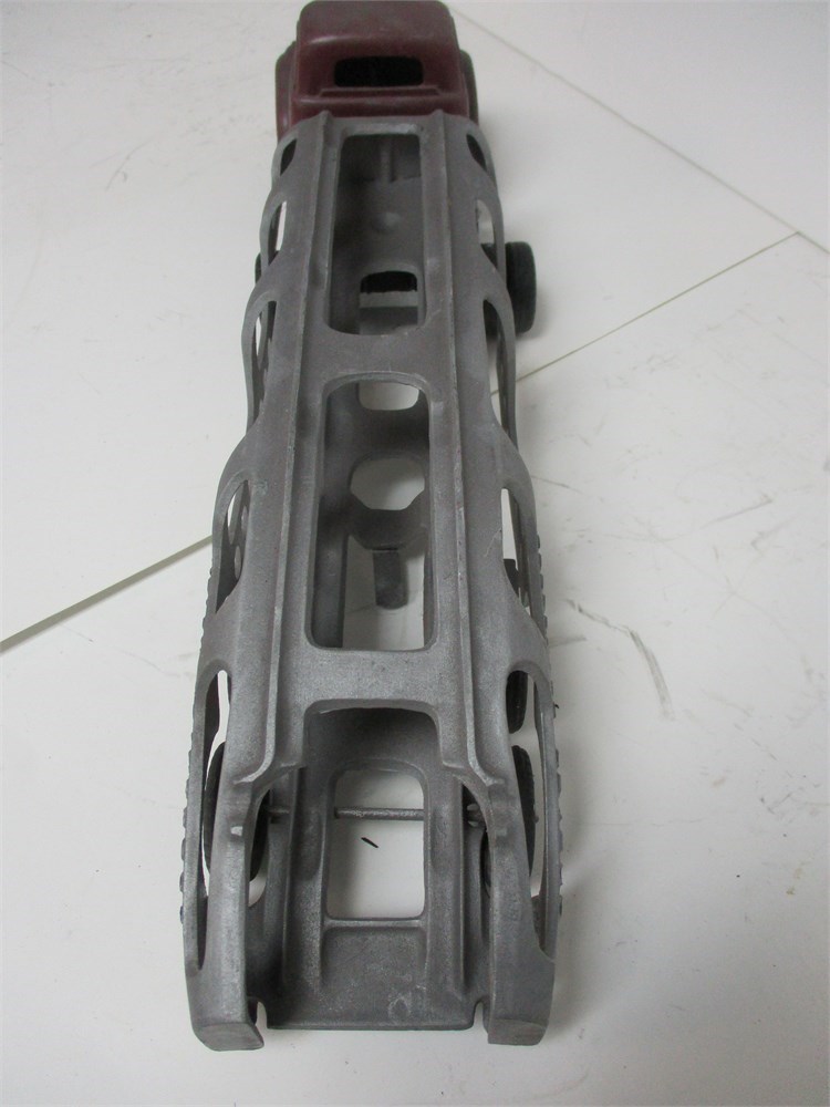 • Materials: Pressed-steel cab/chassis; cast-aluminum open-frame trailer; rubber tires, metal axles
