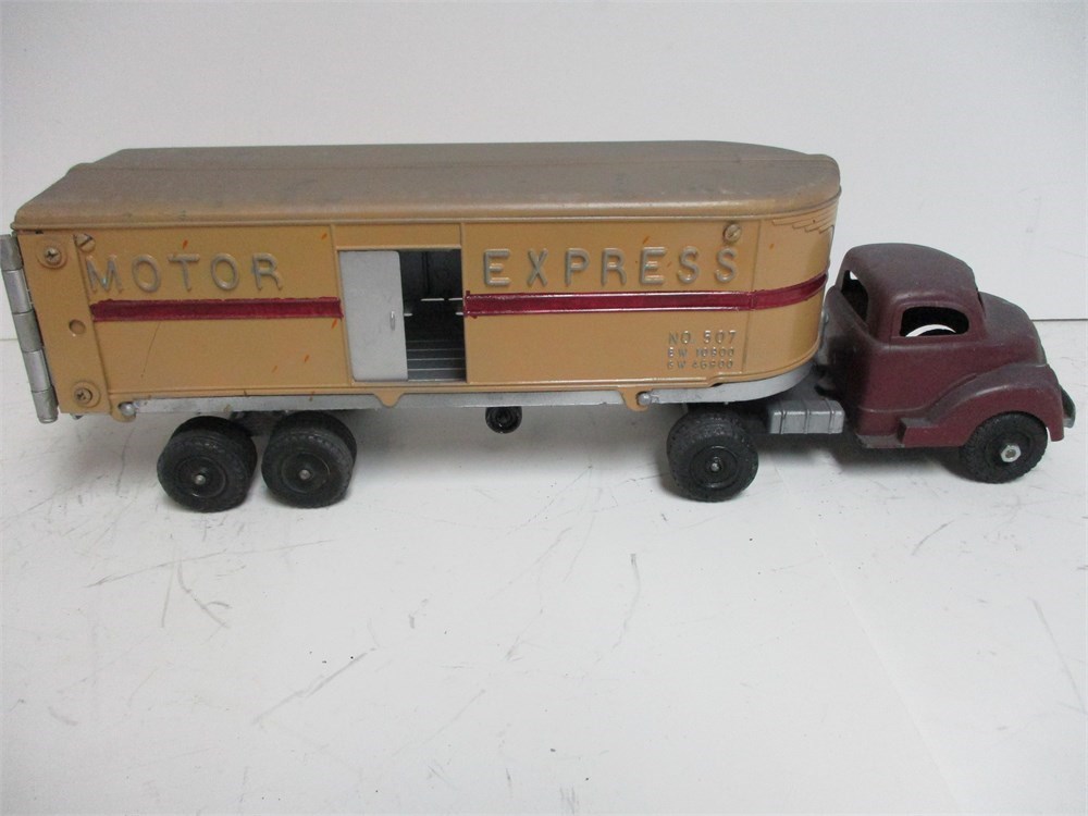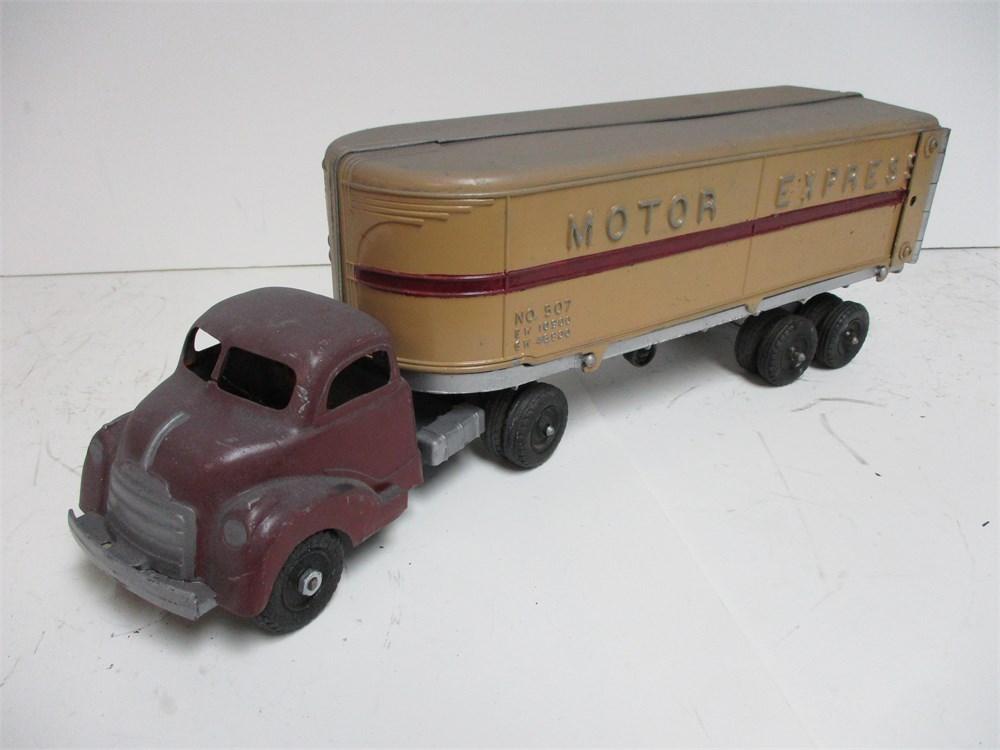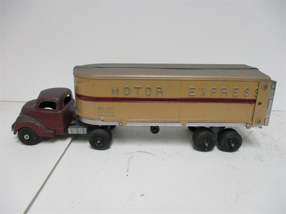 Hubley Kiddie Toy Semi – “Motor Express” Van Trailer w/ Tractor – 500 Series