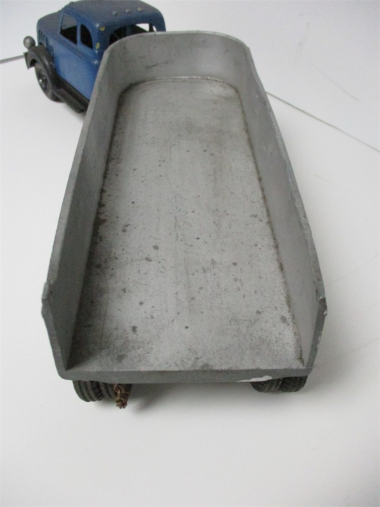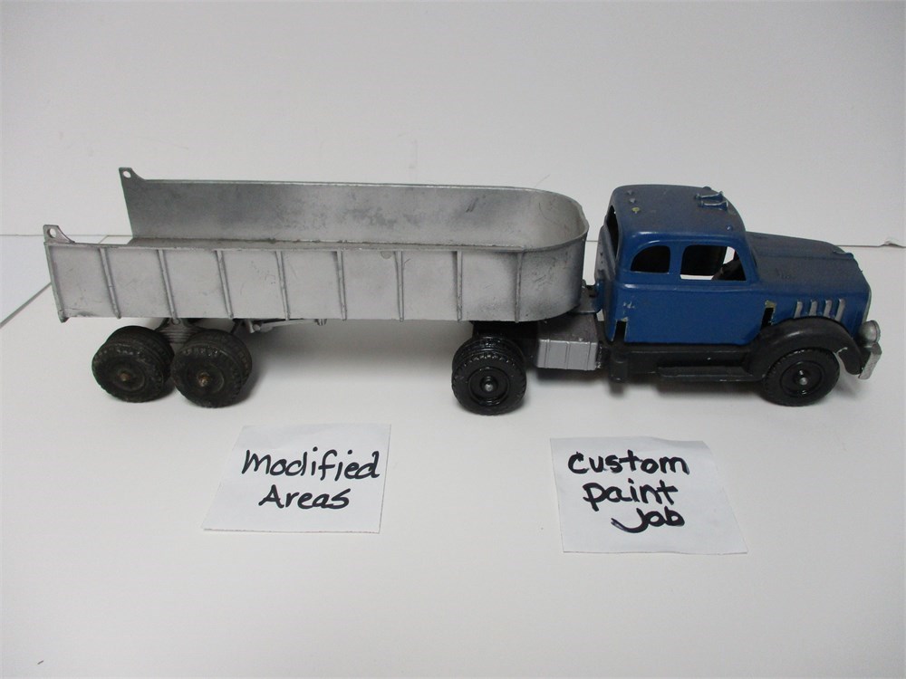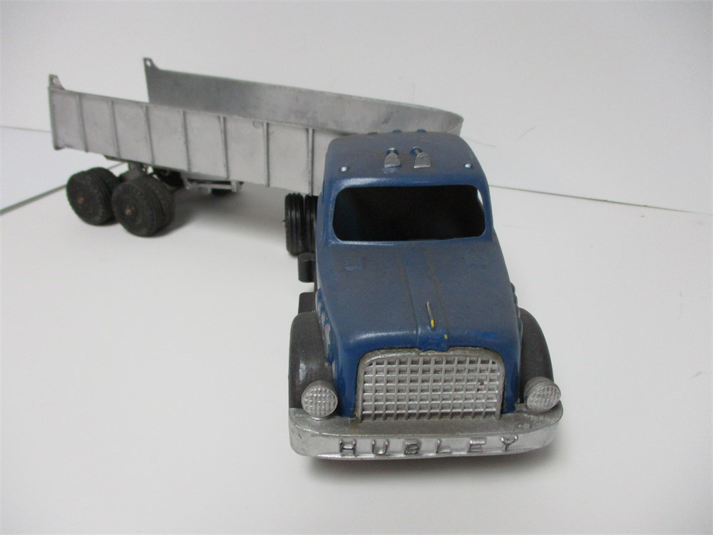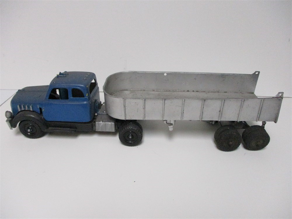 Hubley Pressed-Steel Semi w/ Custom Dump Trailer – Blue/Silver – c.1950s
