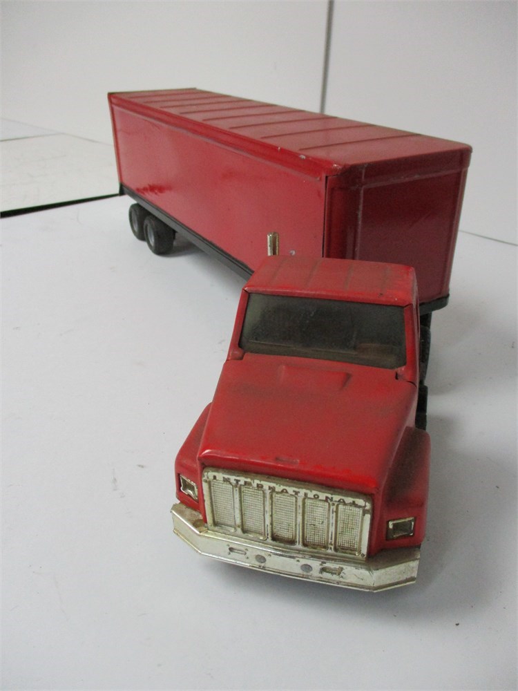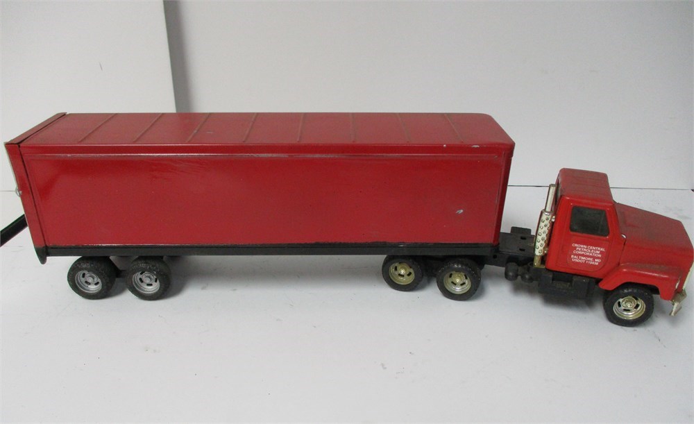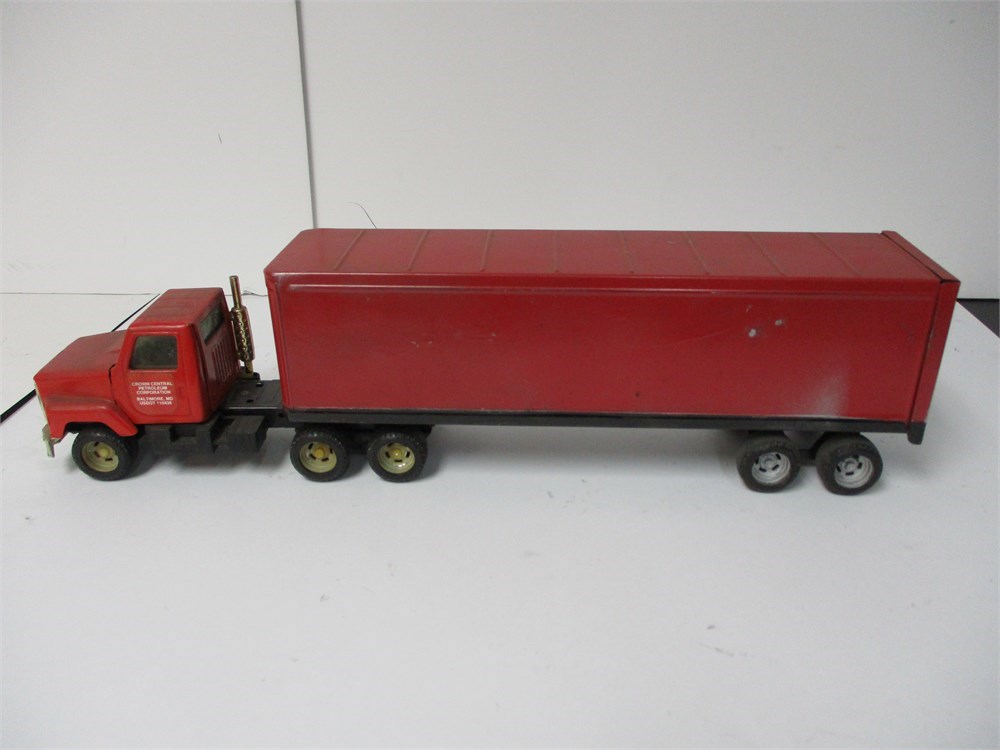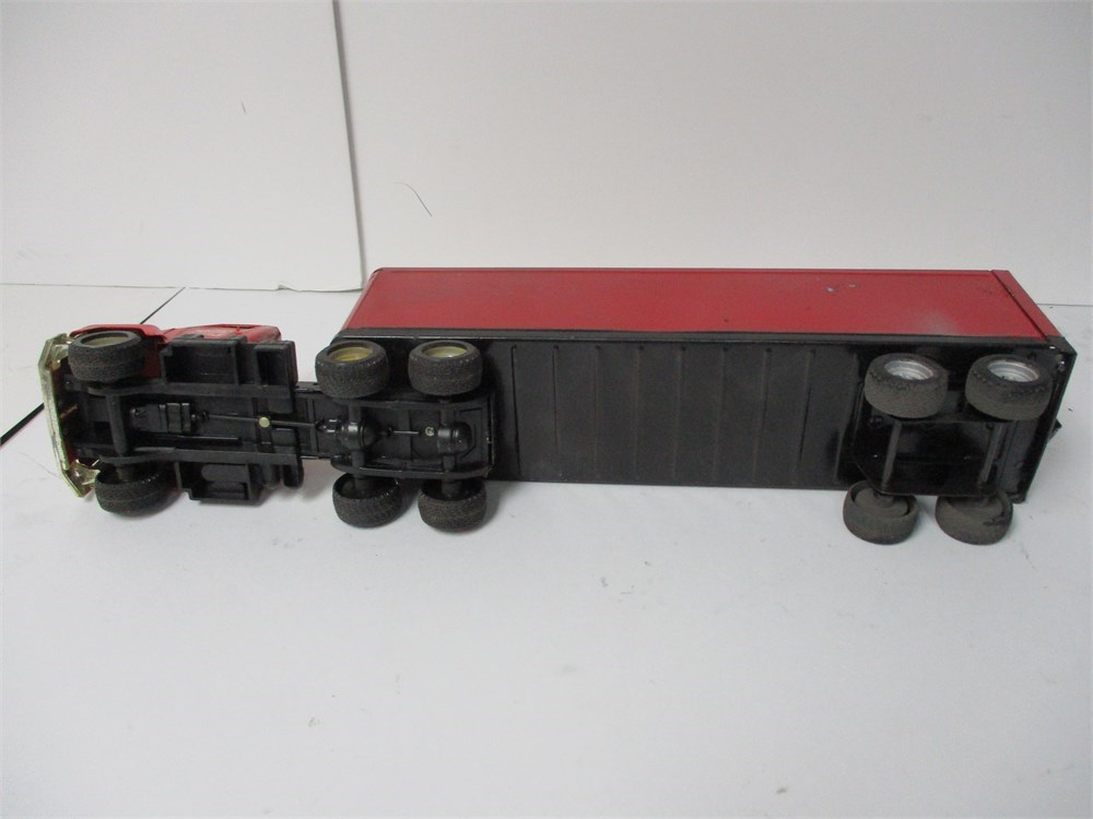 Vintage Red Pressed Steel Semi Truck with Trailer