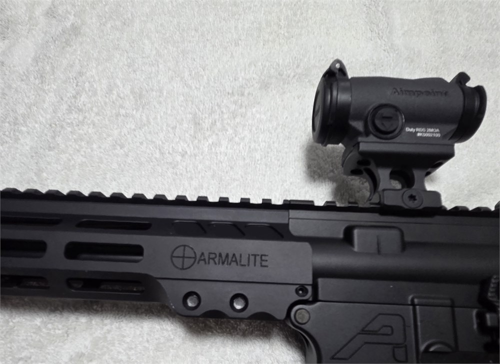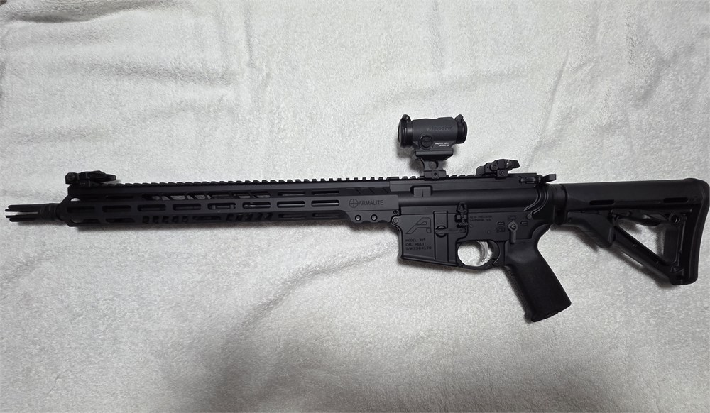 AERO Lower, Armalite Rail, Magpul Stock and Grip, Warhammer charging handle, Aimpoint sight. Very well built and reliable rifle.
