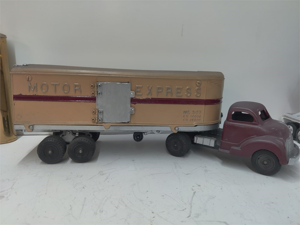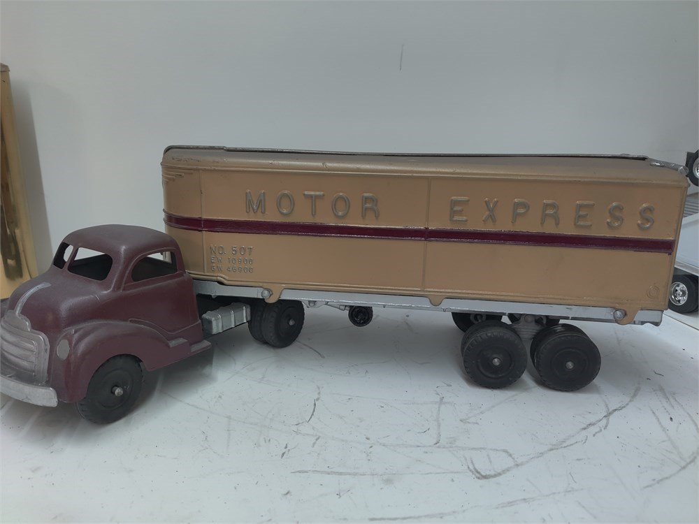 Vintage Hubley Toy Motor Express Semi Tractor Trailer Truck