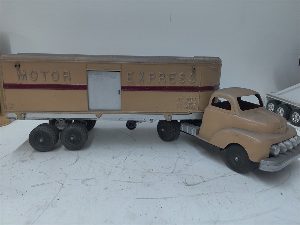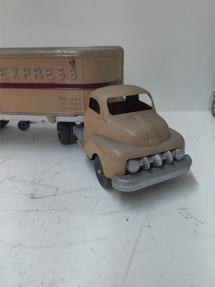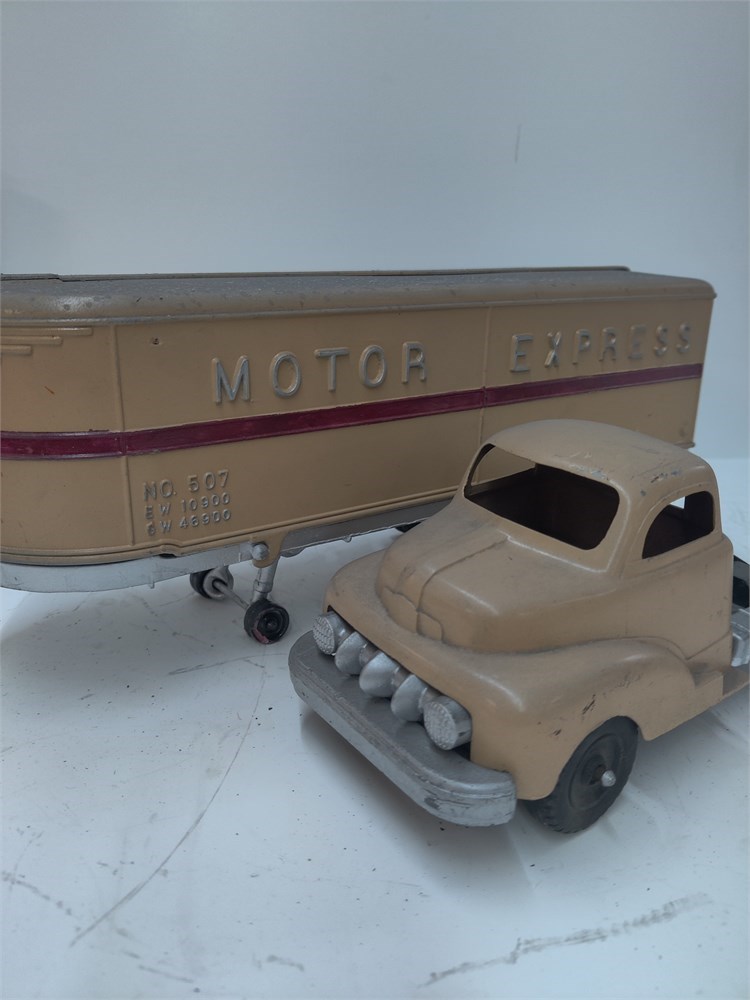 Vintage Hubley Toy Motor Express Semi Tractor Trailer Truck