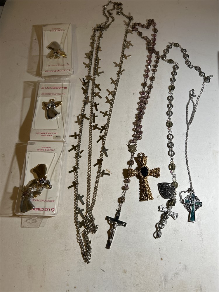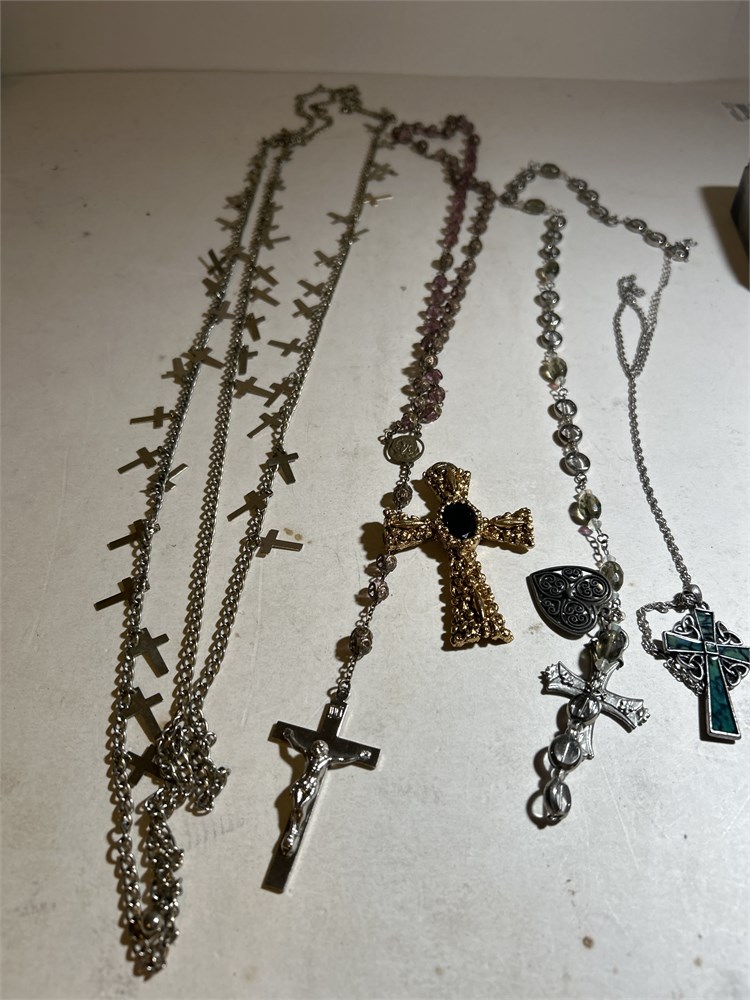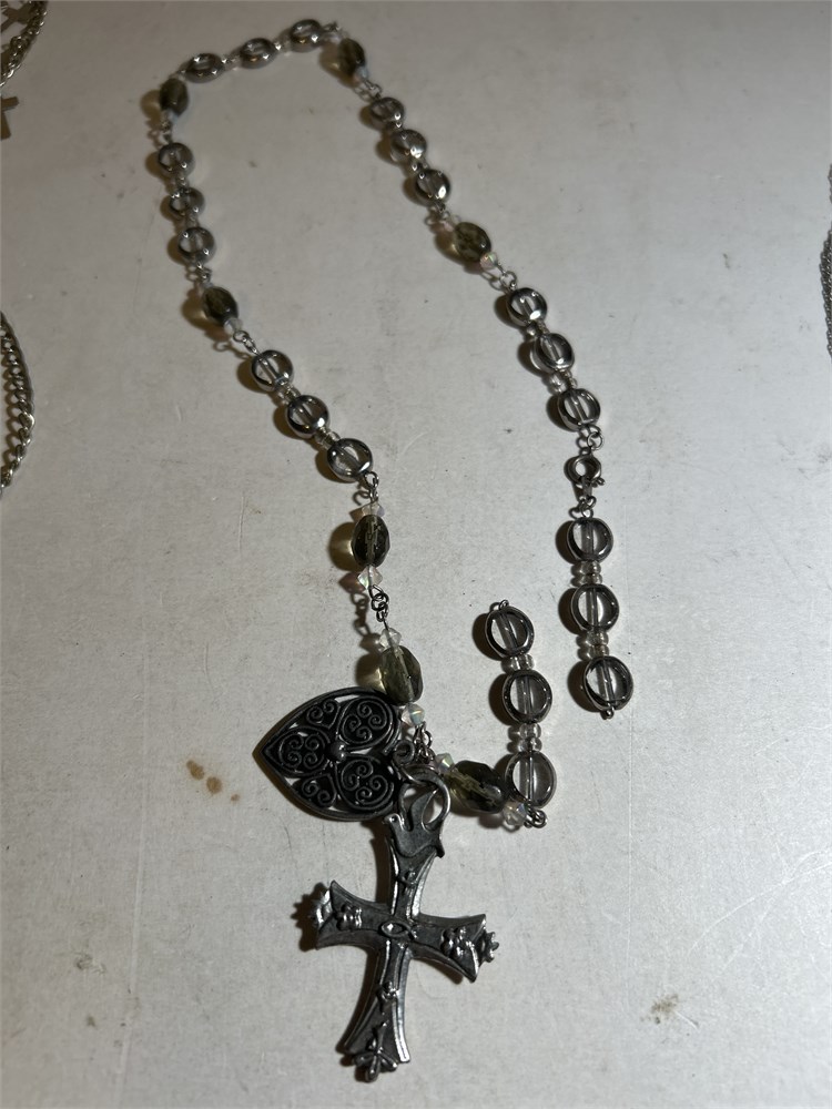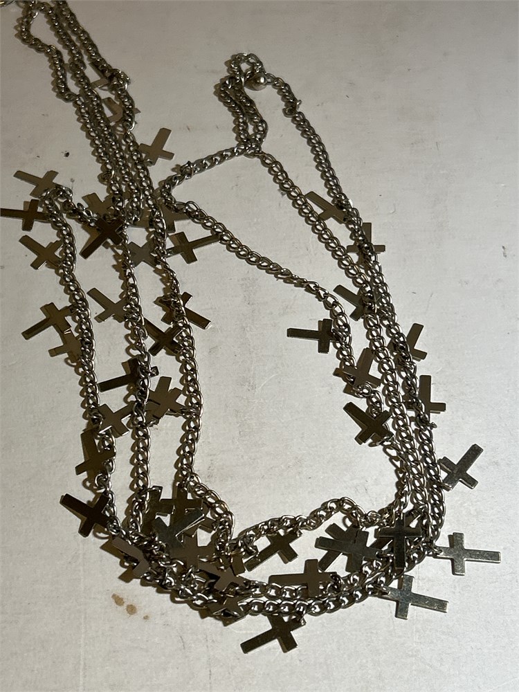 Cross Crucifix w/ chains Christian Religious Silver Gold Tone (L)