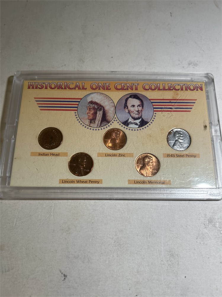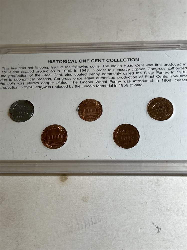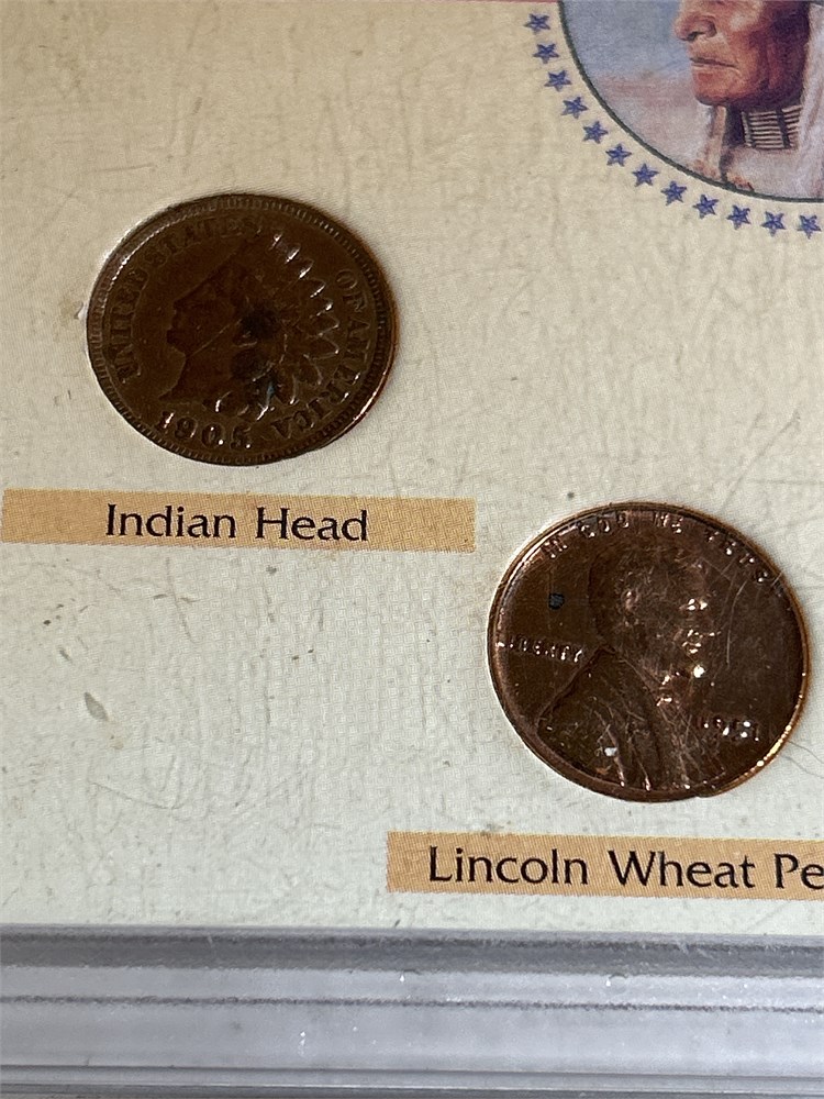 Collection 5 Coins Indian head, Penny Lincoln zinc 1943 steel penny Lincoln wheat penny Lincoln memorial penny