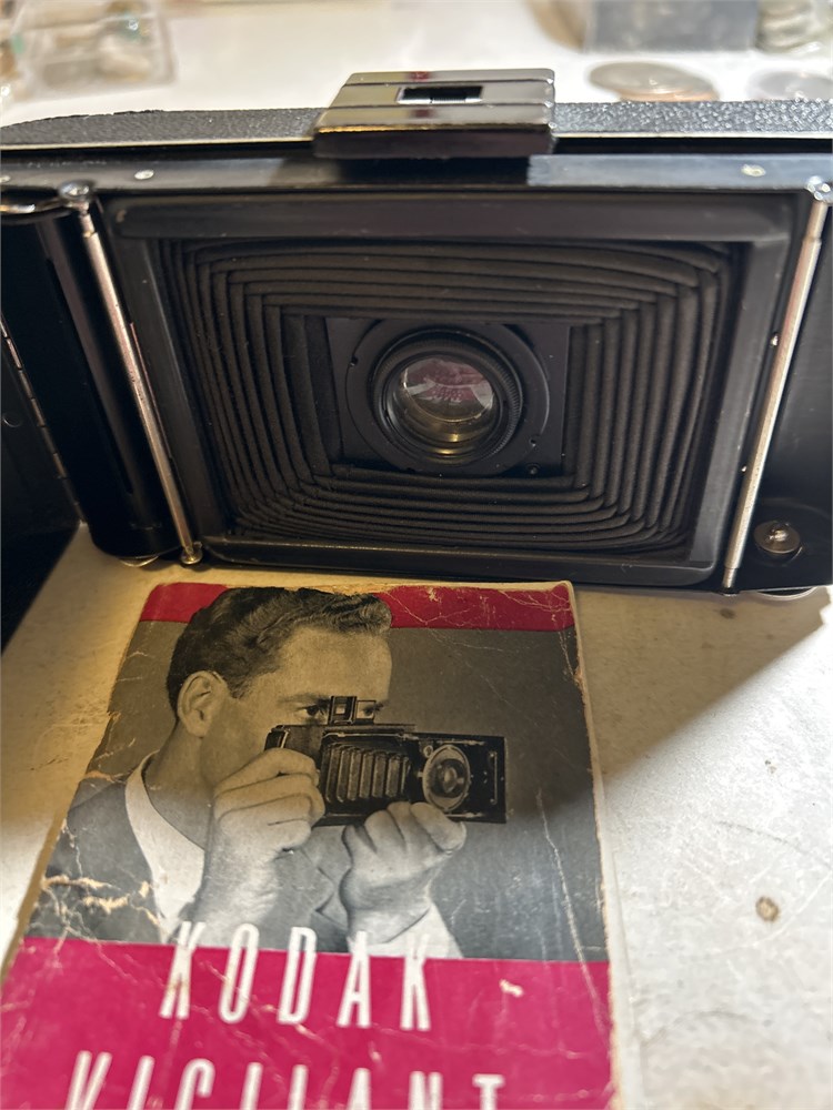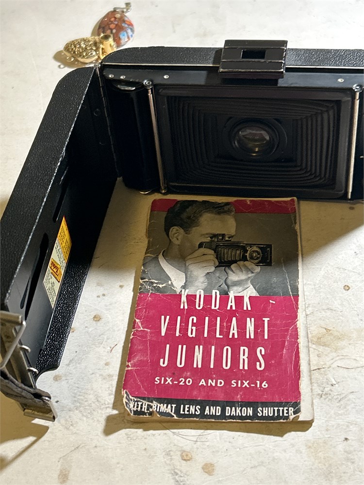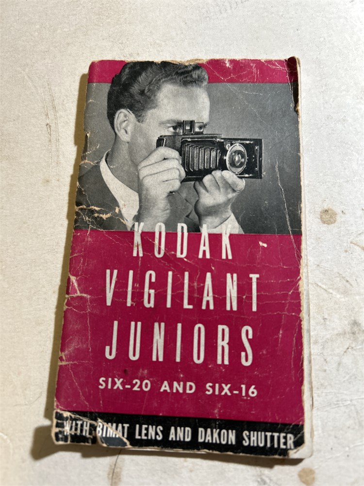Vintage 1940's Kodak Vigilant Junior Six-20 Folding Camera Original with the book on it