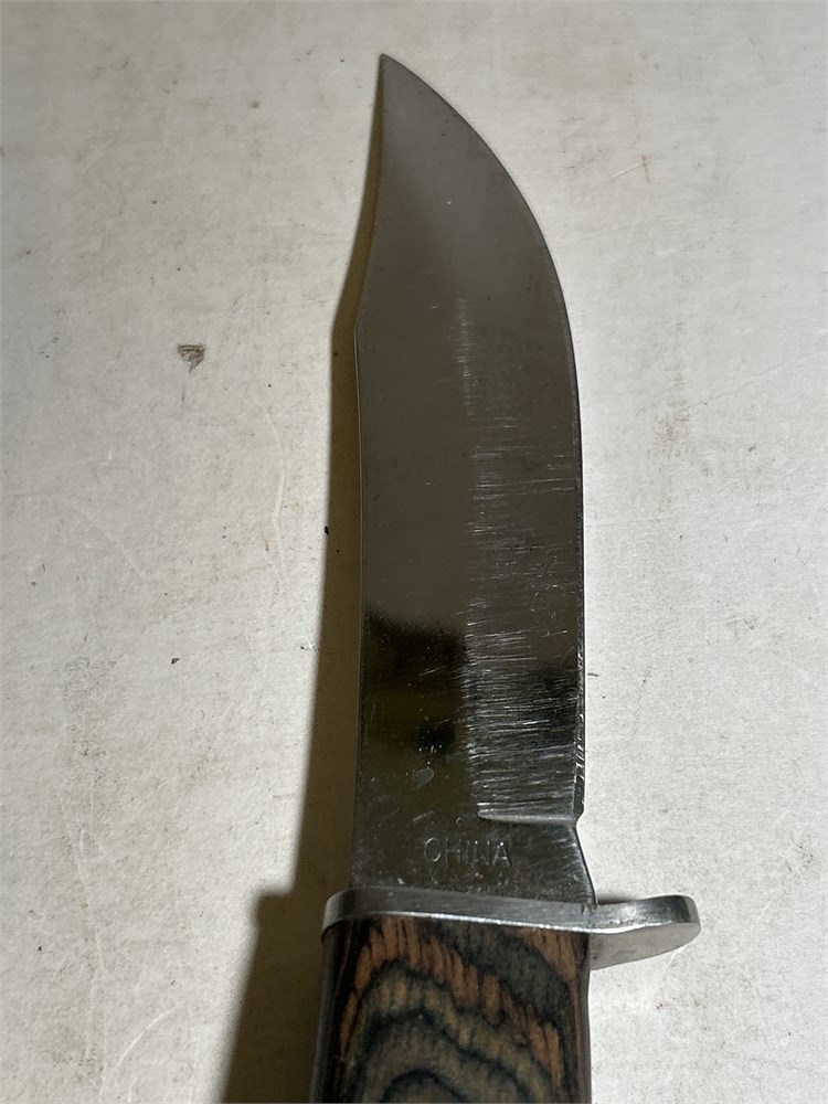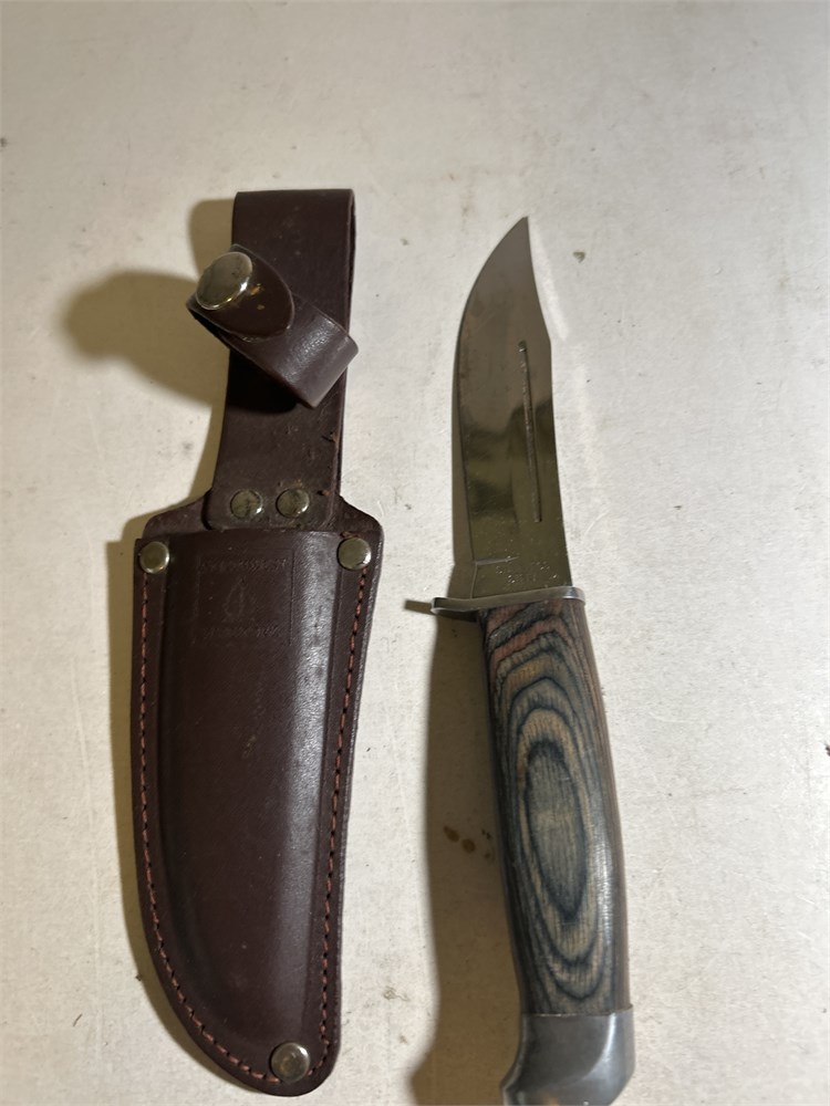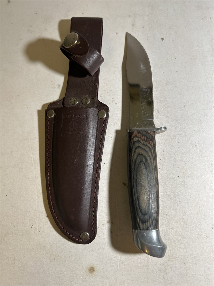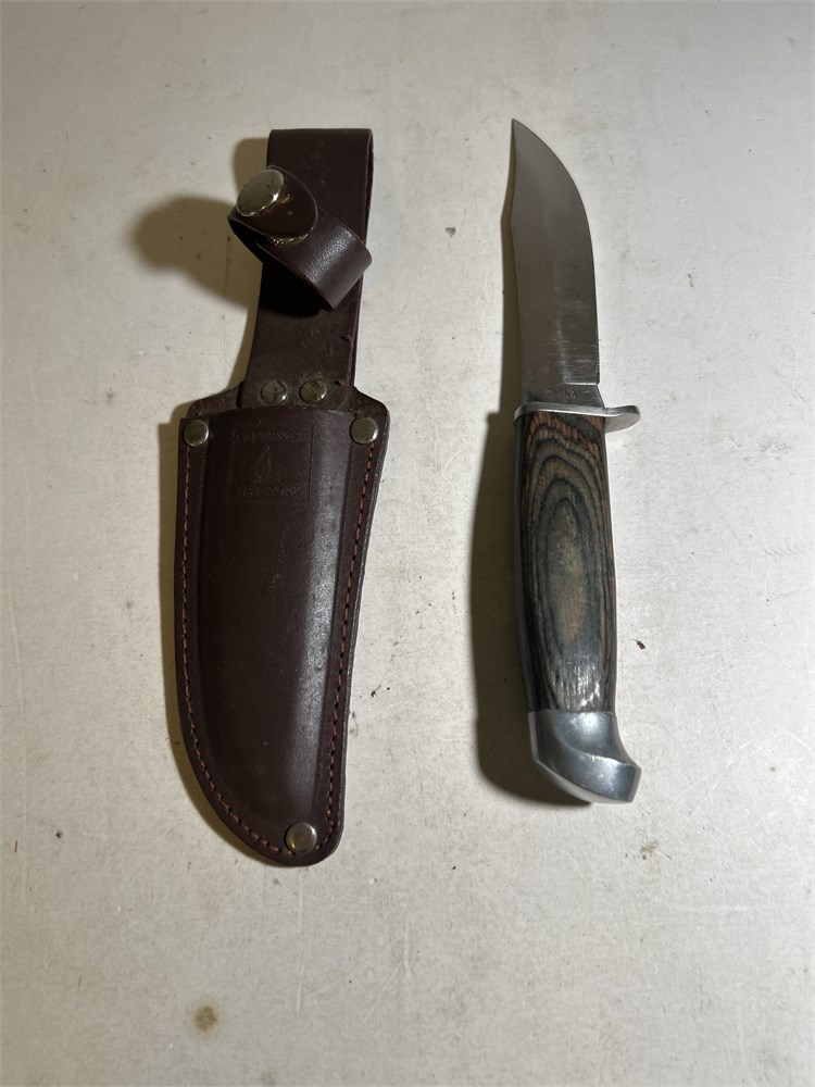 Hunting Knife & Leather Sheath Stainless Steel 8 1/2 inches