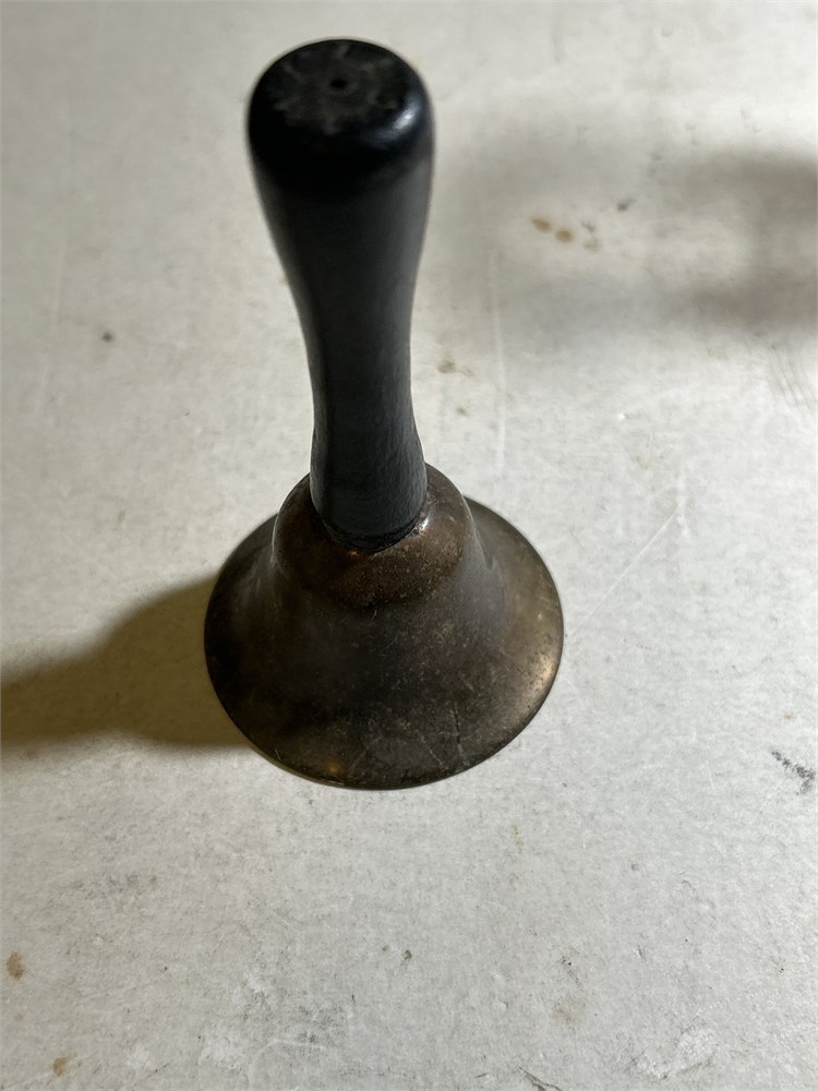 Vintage School Bell Brass And Wood Handle 4 Inches