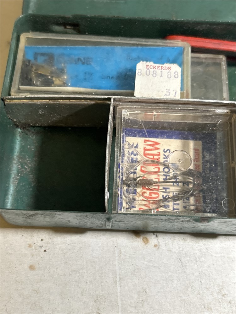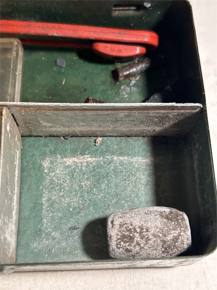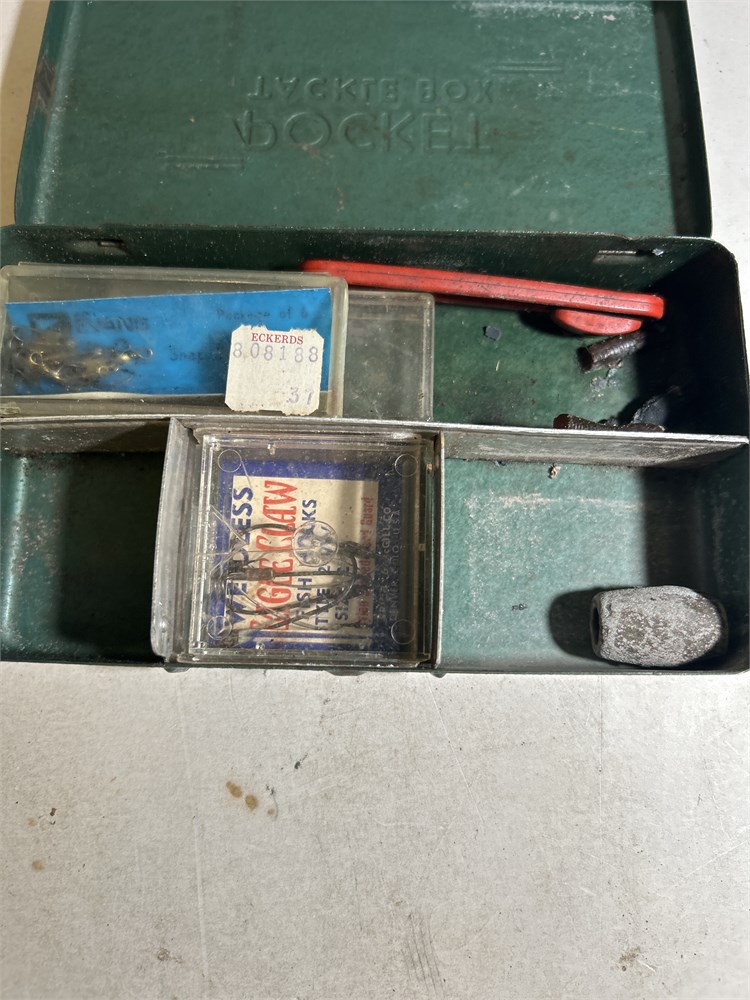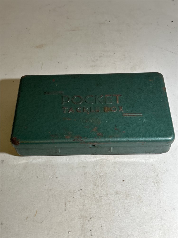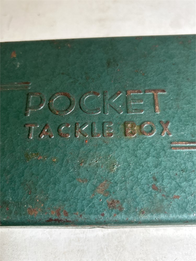 Vintage Antique Steel Green POCKET TACKLE BOX Fishing Container(L)