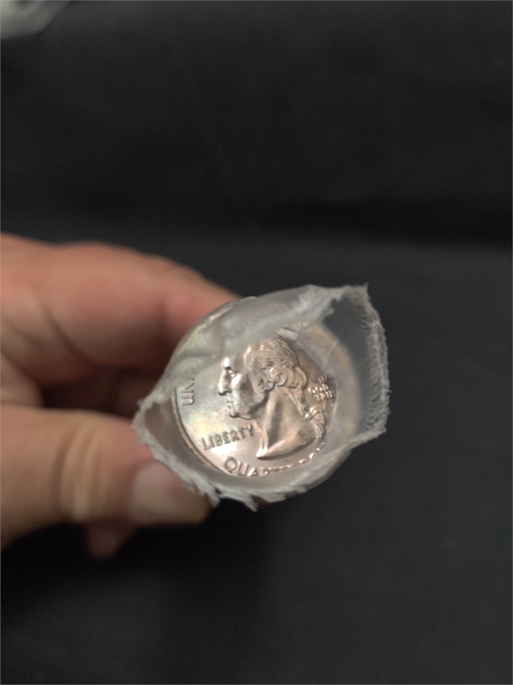 Bankroll of state quarters. Not sure what state as both end quarters have the Washington head face up.
