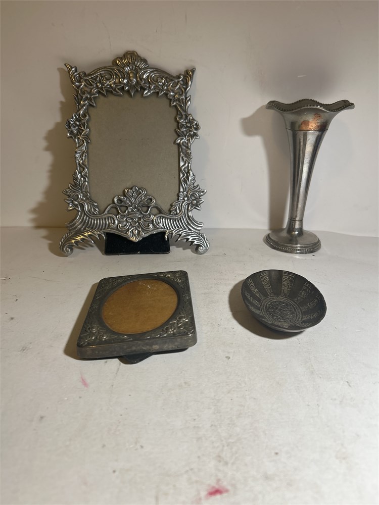 Vintage Picture frame silver flowers art Nouveau 6" x 8" insert 6 x 41/2  Vintage Mini Frame Gold MetalFlower Floral Victorian Style Ornate Oval 3"x2.5" Vintage Morning Glory Bud Vase Silver tone