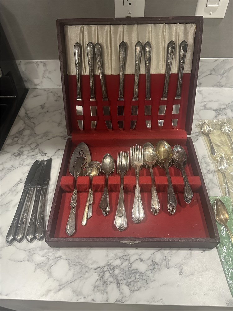 vintage set of silver-plated flatware, specifically identified as "Rogers & Bro Reinforced Plate"