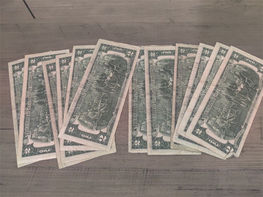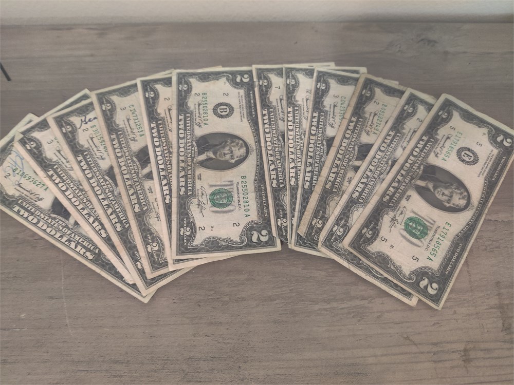 Lot of 12 $2 bills. All are in decent shape.