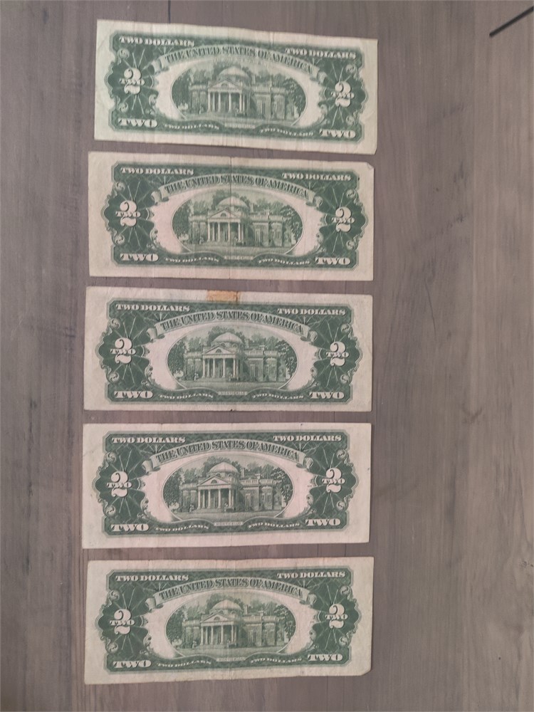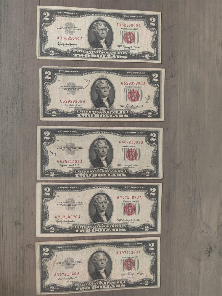 Lot of five 1953 $2 red notes. There are two 1953A, 1953 b, 1953 C and one just 1953.