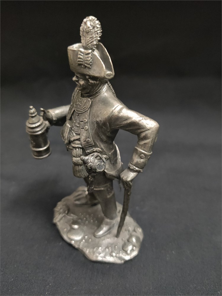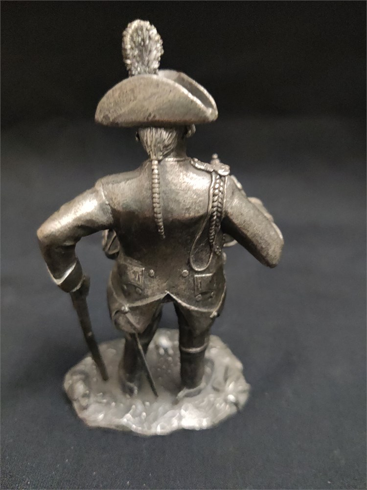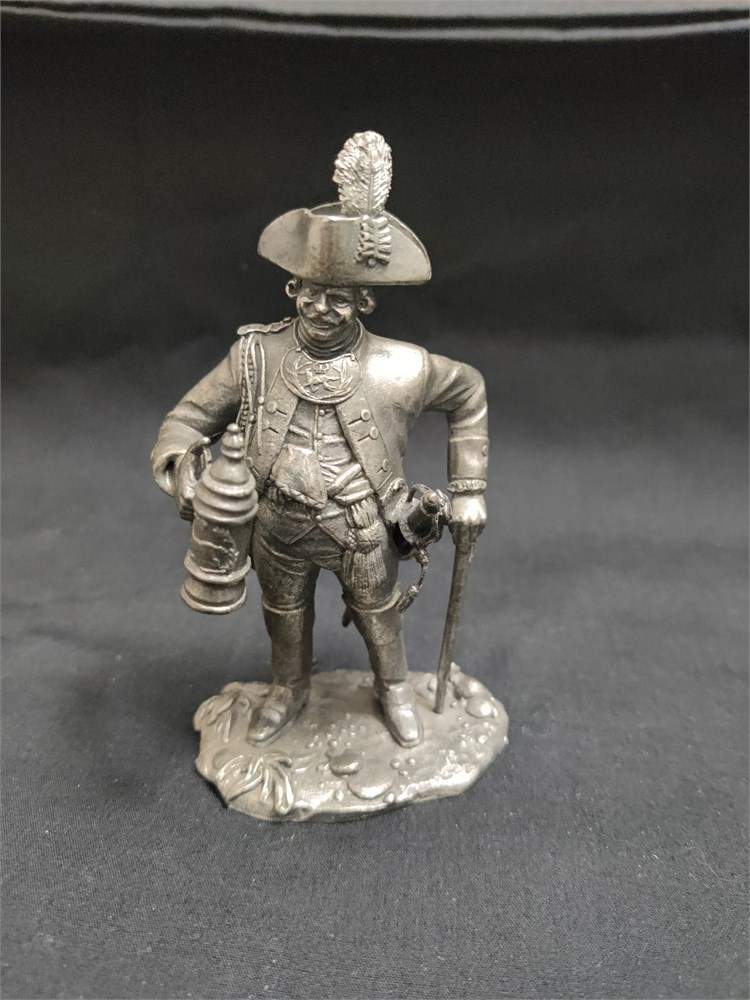 Nice four and a half inch pewter figure. Figure is Brunswick dragoon sculpted by Lionel Forrest.