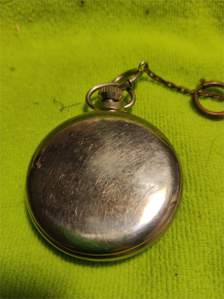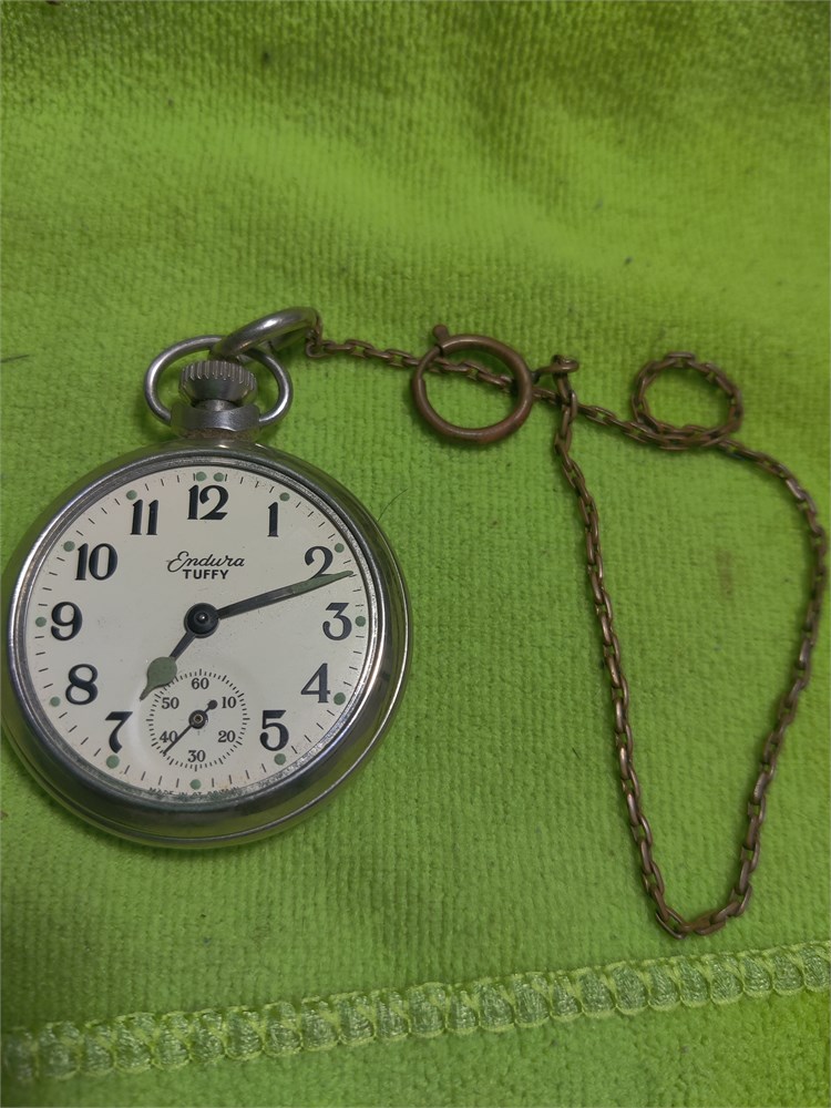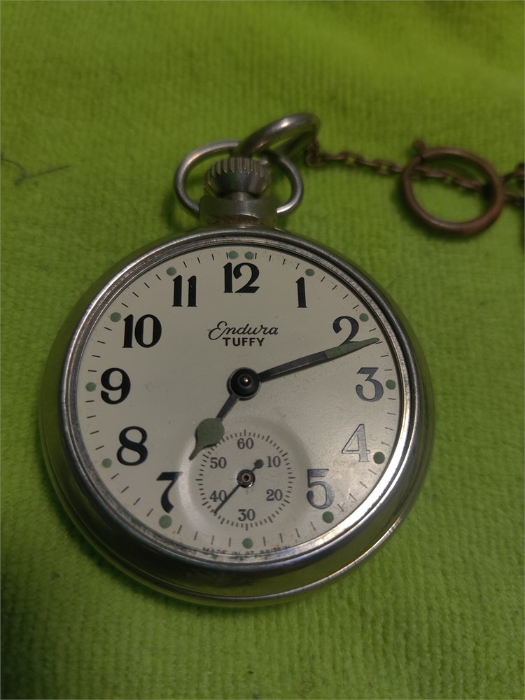 Vintage Endura Tuffy 1960's Manual Wind Pocket Watch Silver Tone Parts Or Repair