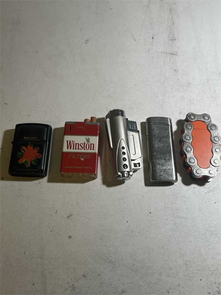 4 electronic vintage lighters Winston lighter bicycle chain, lighter to silver lighters One gas lighter