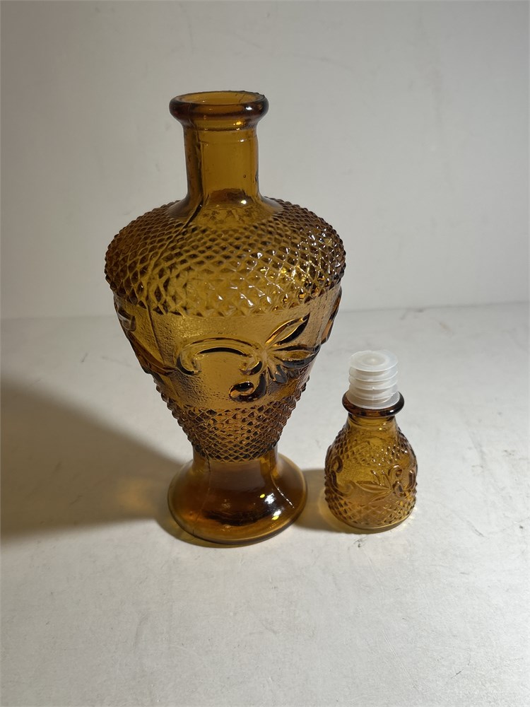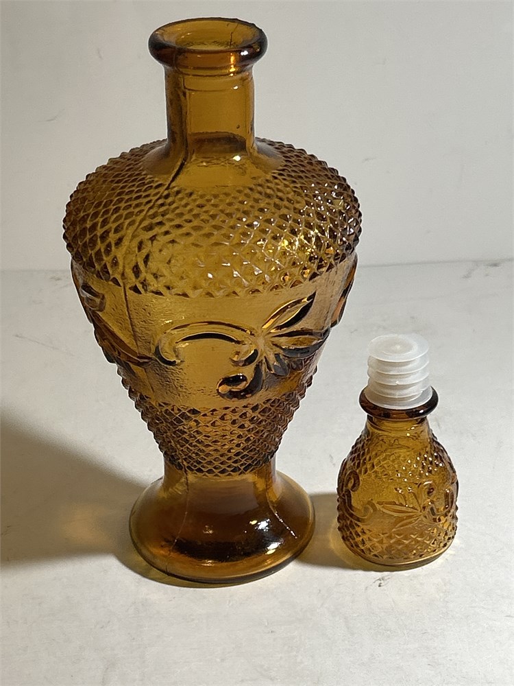 Amber Pressed Glass Decanter - Sprig and Diamond Pattern (L)
