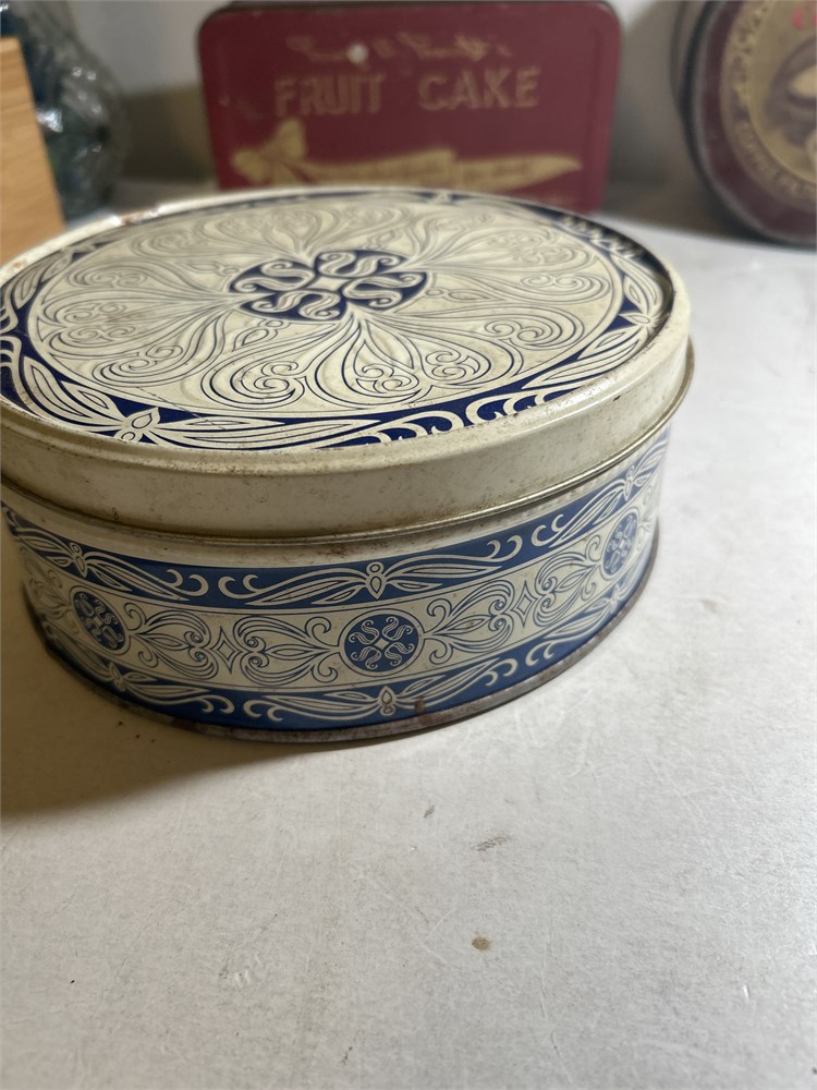 Vintage Shirley Jean Fruitcake Tin Blue & White Embossed Art Nouveau Baltimore  MR. COFFEE Vintage Collector Tin Canister Limited EditionMary B. Merrit Vintage Fruit cake tin