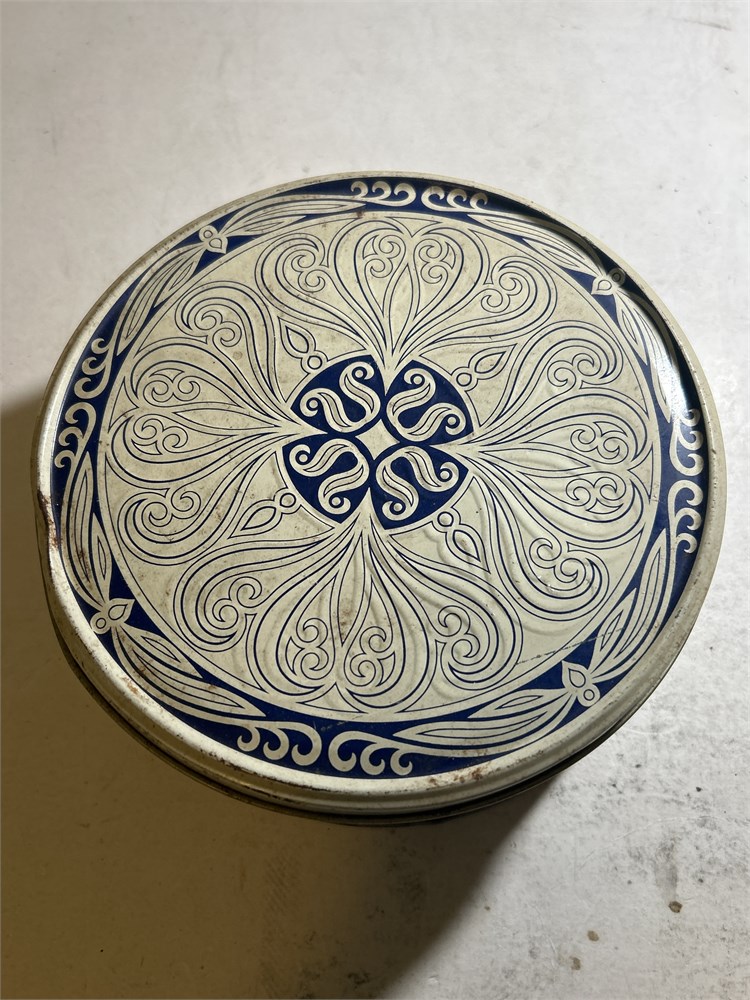 Vintage Shirley Jean Fruitcake Tin Blue & White Embossed Art Nouveau Baltimore(L