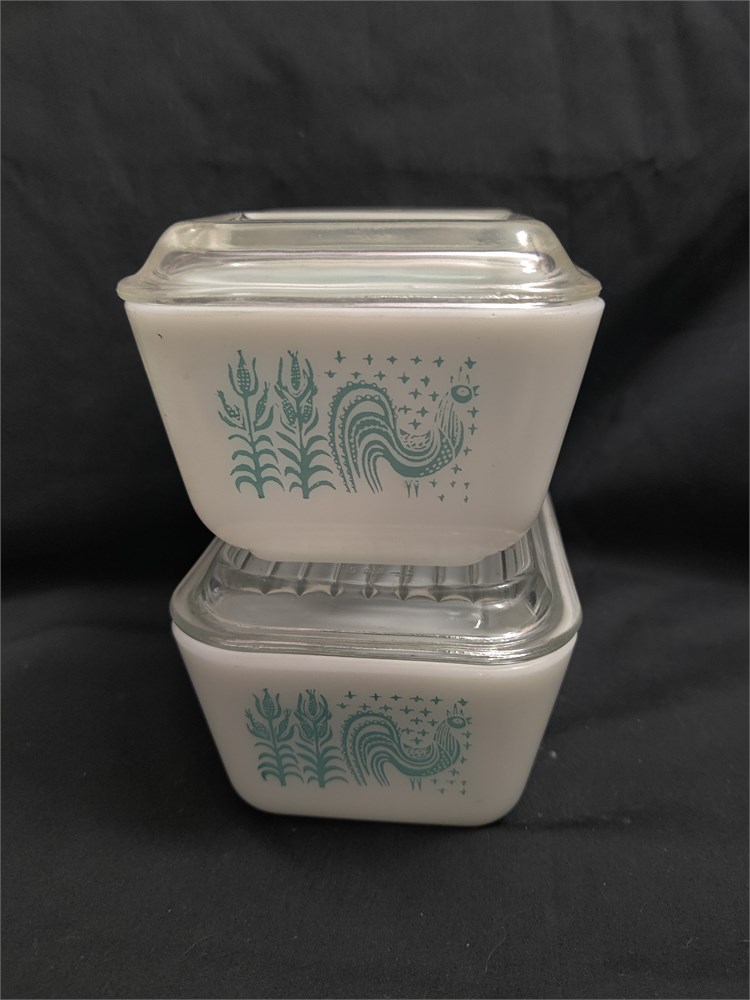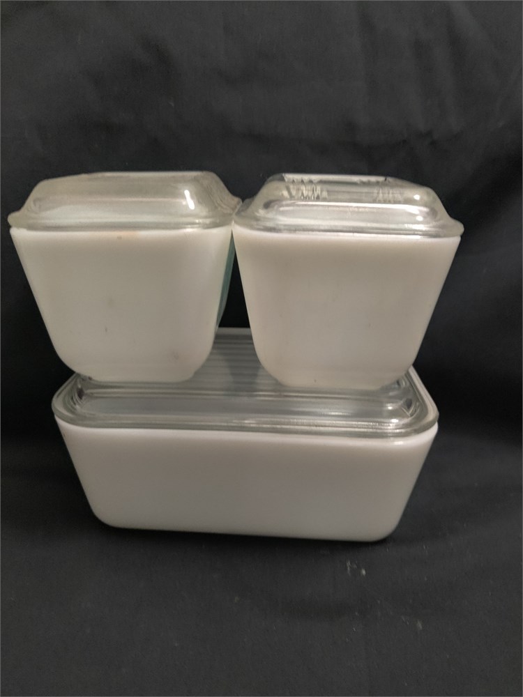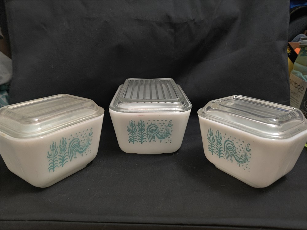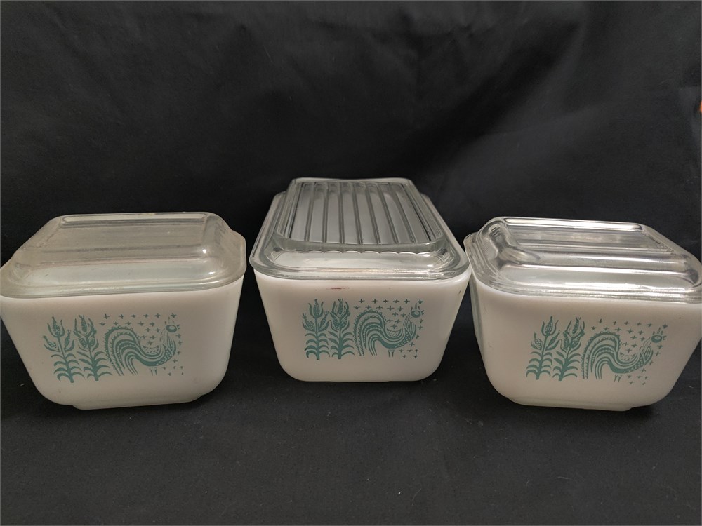 Vt Pyrex Blue Amish Butterprint 6 Pc Refrigerator Set w/ Lids (2) 501 & 502 c(M)