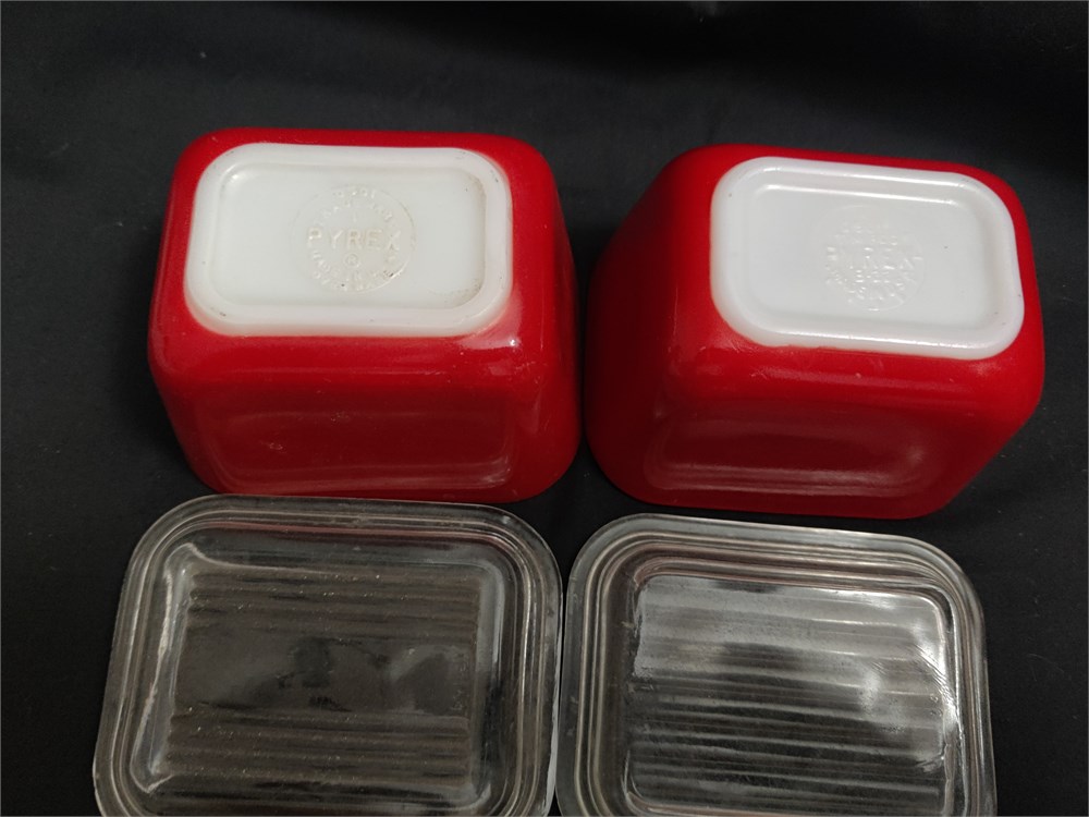 Pyrex 501 Red Set of Two Small Refrigerator Jars with Lids