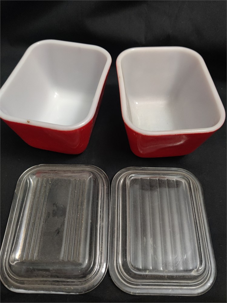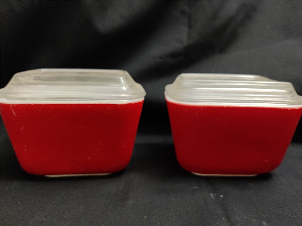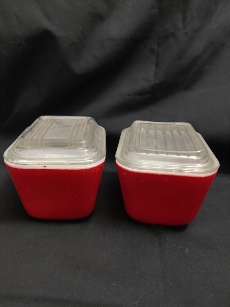 Pyrex Red Set of Two Small Refrigerator Jars with Lids c(M)