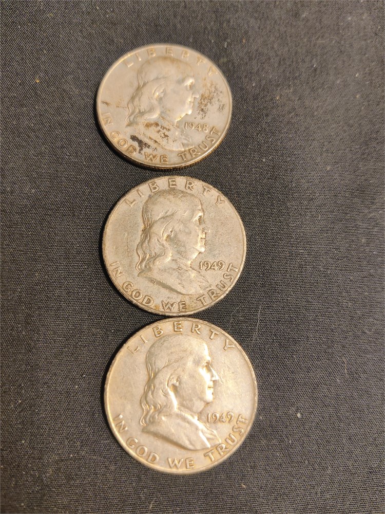 3 Benjamin Franklin half dollars. One is 1948 and 2-1949s.