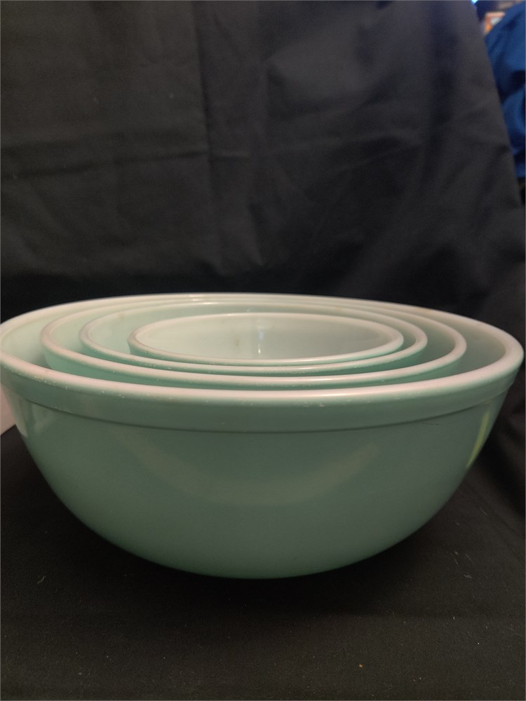 Pyrex Vintage Robin Egg Blue / Turquoise Nesting Mixing Bowl Set 401,402, 403, 404.