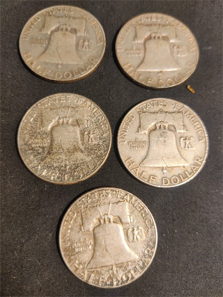 5 Benjamin Franklin Half Dollars (LB)