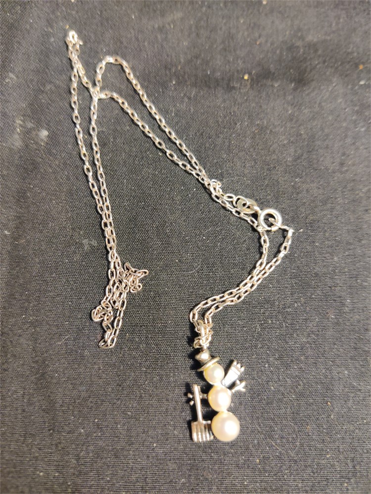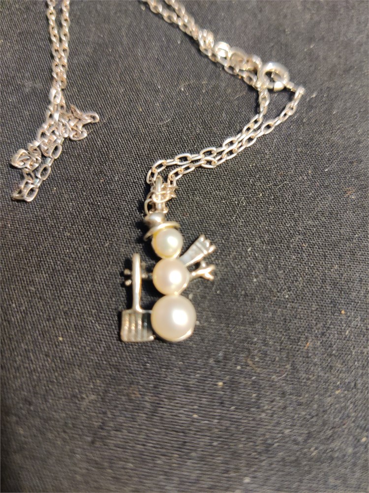 Nice sterling silver snowman pendant on 16-in chain. Total weight is 3.84 g.