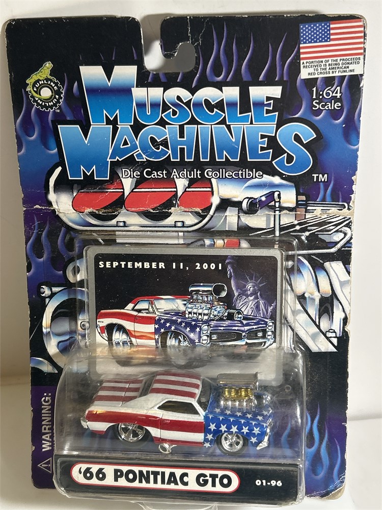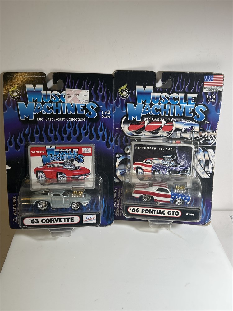 Muscle machine day test, 164 scale 1963 Corvette gray with blower 1966 Pontiac, GTO, red white and blue with the blower