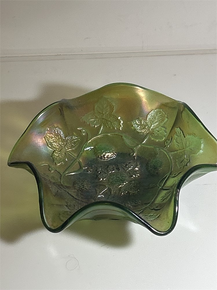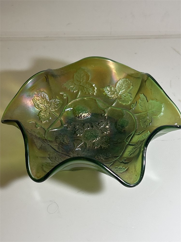 Antique Millersburg Black Berry Wreath Green Carnival Glass Bowl(L)