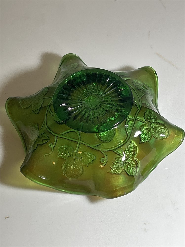 Antique Millersburg Black Berry Wreath Green Carnival Glass Bowl
