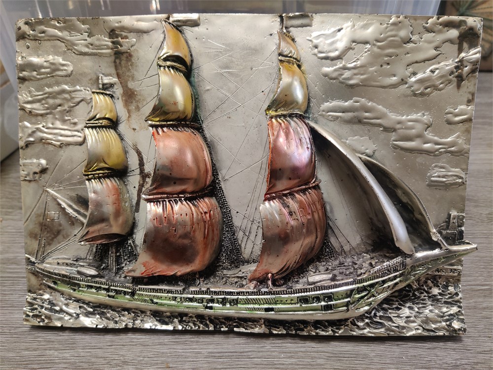 Vintage 3D Cooper & Metal Ship Art
