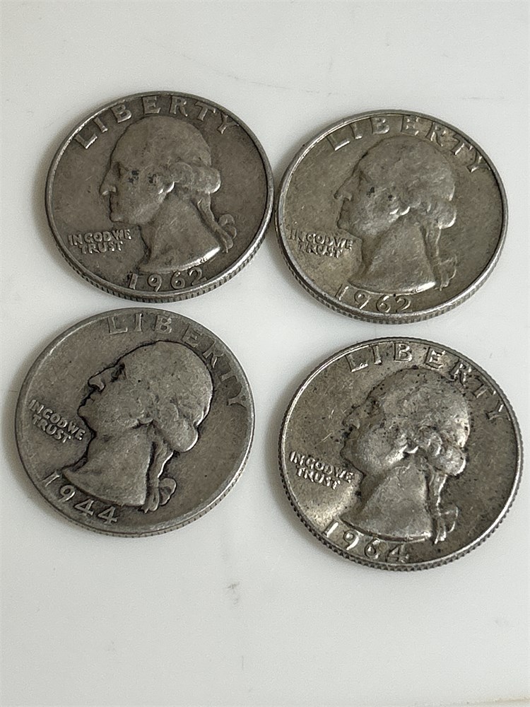 Silver Washington Quarter 1964d,1944.1962d and 1962d