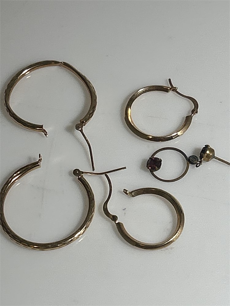 Two sets of 14 k gold earrings Hoops, one single 2.1 g
