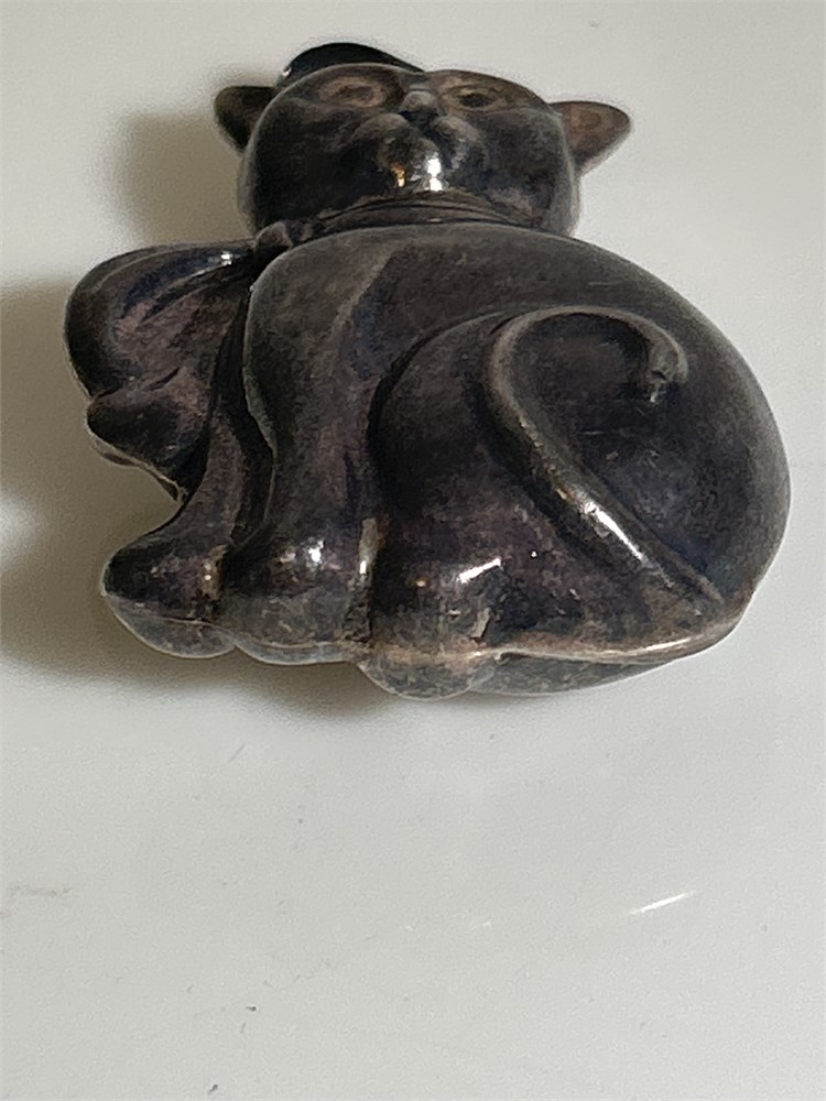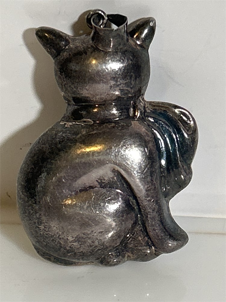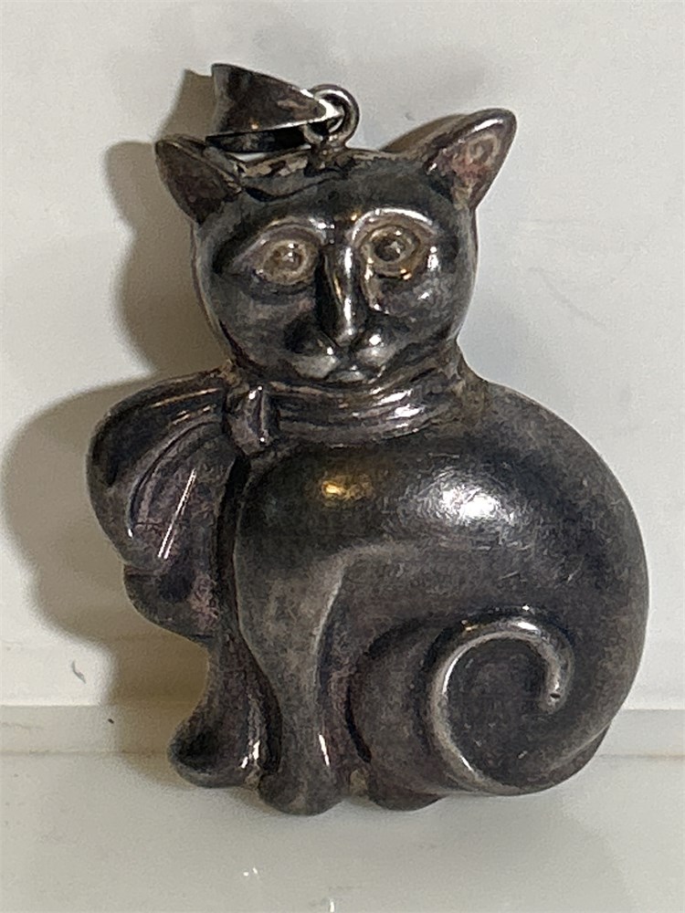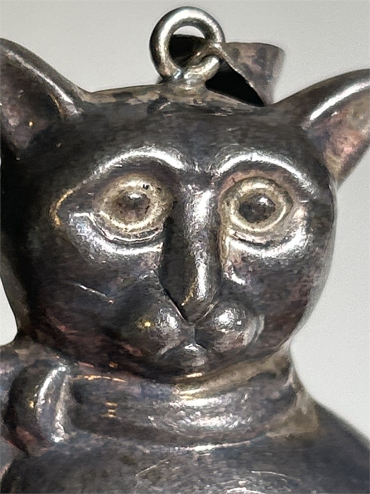 VINTAGE STERLING SILVER LARGE PUFFY KITTY CAT PENDANT 925 13.6 GRAMS