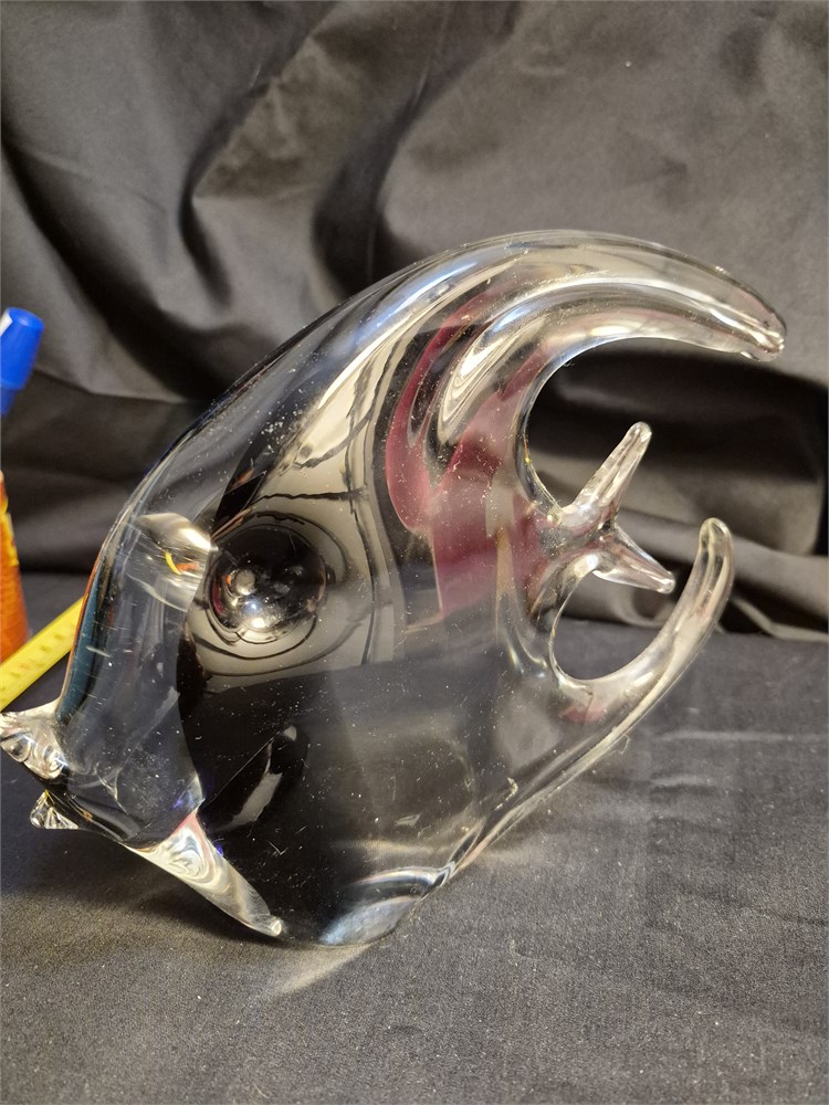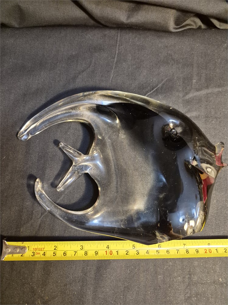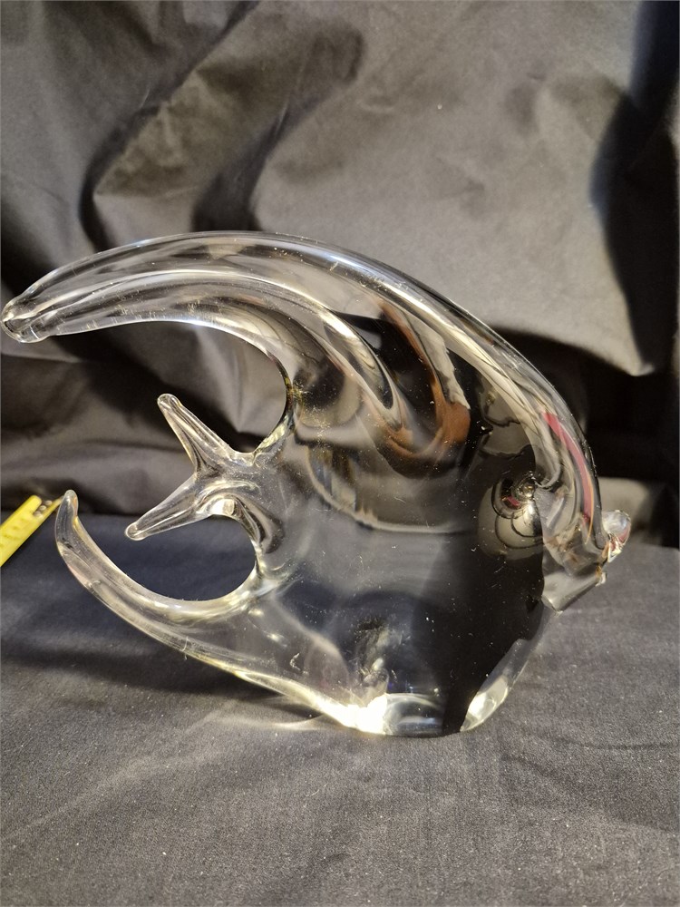 Very nice 8" long 6" tall glass Fish. Fish is black and clear.