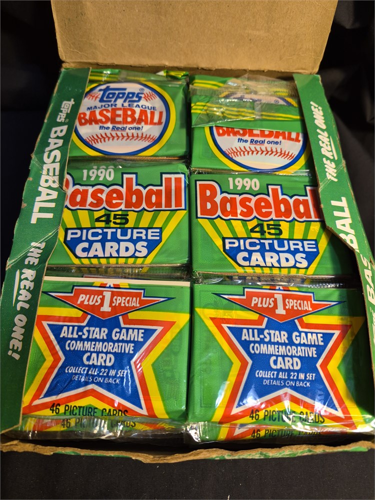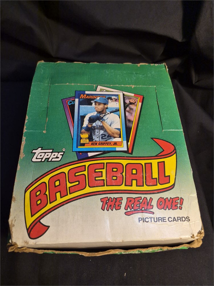 1990 Topps Rack Pack Baseball Box 24 Sealed Packs Ken Griffey Jr.. box is not in great condition but packs are still excellent.