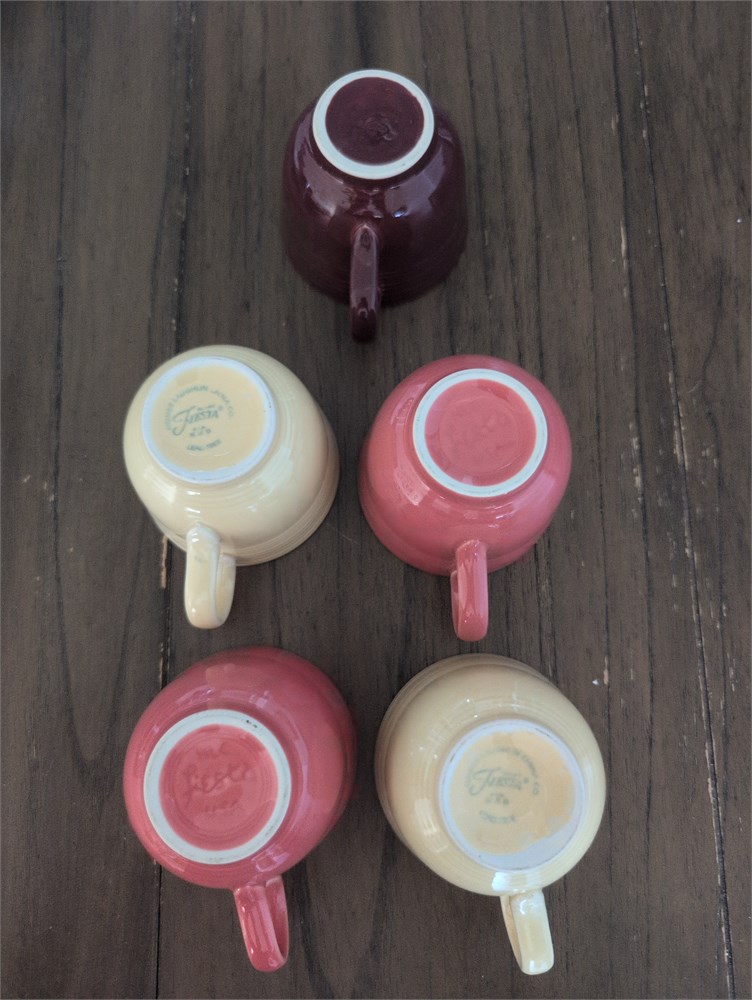 These usually sell for about $4 each. However, you can buy all five for one bid. They are all very nice, very clean. I do not see any chips in any of them, great addition for the fiestaware collector. Rare colors!