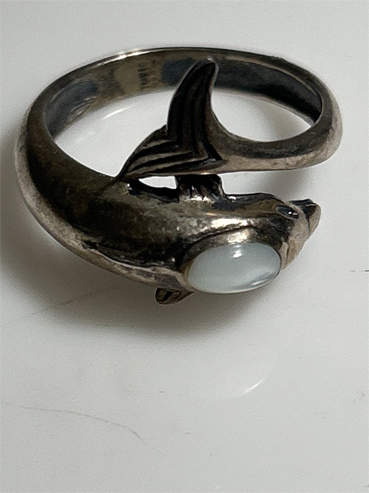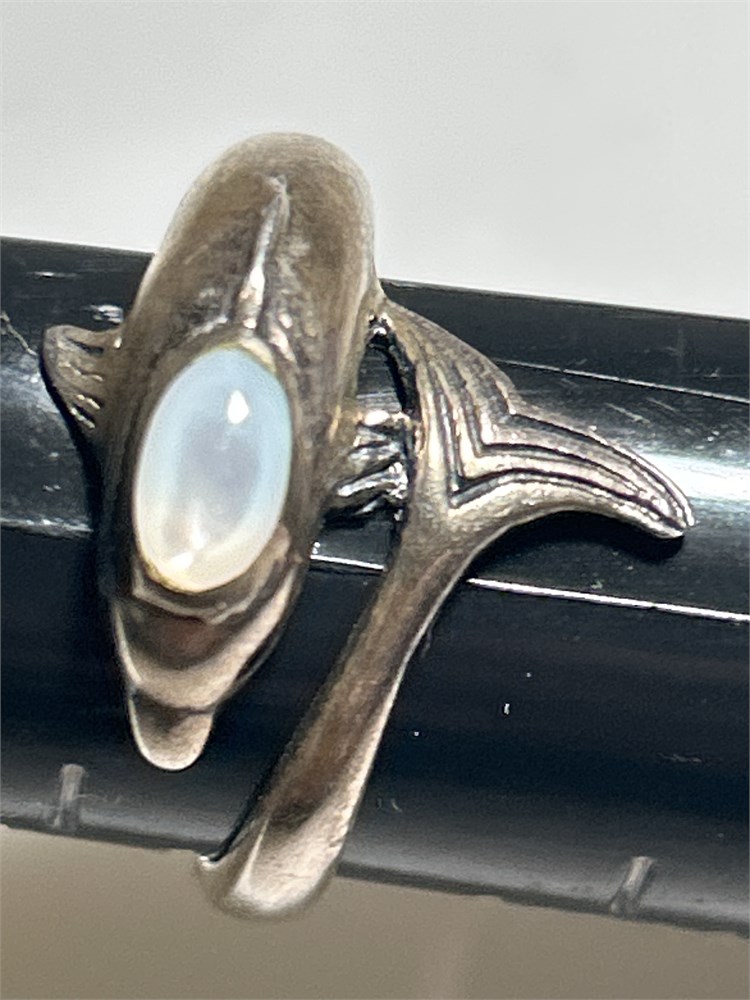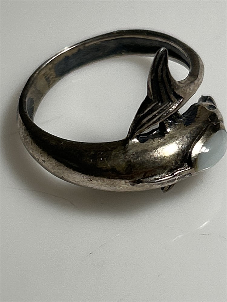 Dolphin Vintage Sterling silver ring with white opal stone 3.73 g ring size 7 1/4